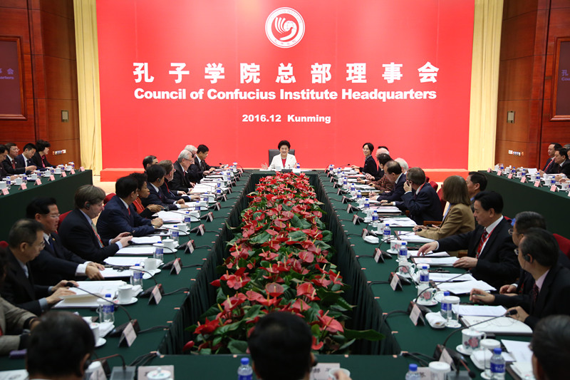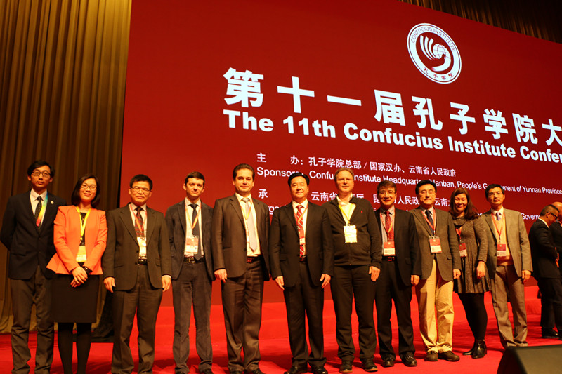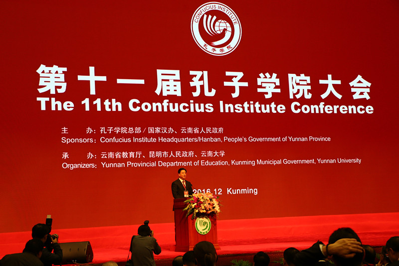 12月10-11日,第十一届全球孔子学院大会在云南昆明隆重召开,本届大会主题是“创新、合作、包容、共享”,来自140多个国家和地区的大学董事长、孔子学院代表、相关国家驻华使节和中方承办高校代表等共计2200余人出席了大会。开幕式由教育部部长、孔子学院总部理事会副主席陈宝生主持,中共中央政治局委员、国务院副总理、孔子学院总部理事会主席刘延东出席并做主旨演讲。刘延东强调,当今时代,构建以合作共赢为核心的新型国际关系,携手打造你中有我、我中有你的人类命运共同体,是世界各国人民共同心声。孔子学院要深化教师、教材、教学法改革创新,拓展办学功能,提高办学质量,实现内涵发展。要发挥中外合作高校的积极性,完善理事会机制,促进合作办学深度融合。要推动孔子学院本土化发展,坚持开门办学,推动文明互学互鉴。要主动服务于“一带一路”建设战略,支持区域、国别之间孔子学院合作,努力惠及各国人民,为促进多元多彩文明发展作出新贡献。