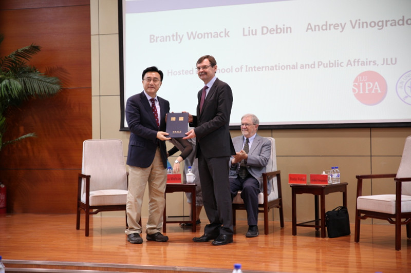 沃麦克教授就当前美国形势做了简短介绍,他认为特朗普上台后美国在各方面均面临极大的不确定性,这对美国造成了严重的威胁,其威望和领导力逐渐出现下降趋势。沃麦克教授认为,特朗普上台对于美国来讲实际上是一场“政治危机”。维诺格拉诺夫博士认为,俄罗斯长久以来一直存在着矛盾心理和两难选择——向东还是向西?俄罗斯作为夹在亚洲与欧洲之间的大国长久以来一直被无法做出准确的身份定位所困扰,时至今日,有必要尽早确定其方向。刘德斌教授则表示中美俄三国都将面临重要的转折点,中俄都担负着文明转型的艰巨任务,这将是一个漫长的过程;但美国的转折很可能随着领导人的更迭很快到来。因此应该尽快展开三国对话,并希望今天的会议能成为一个好的开端。