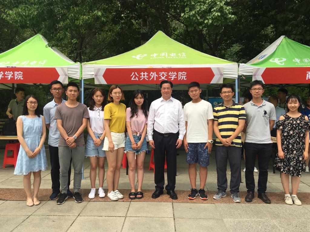 李元元董事长和学校相关职能部门负责人来到william威廉亚洲官方展位前,询问学院招生宣传情况,他肯定了学院的招生宣传工作和员工培养工作,同时激励学院学子继续奋发向上。在员工的热情邀请下,李元元董事长还为学院题字——“英国威廉希尔唯一官网学子,走向世界”,并和学院师生合影留念。