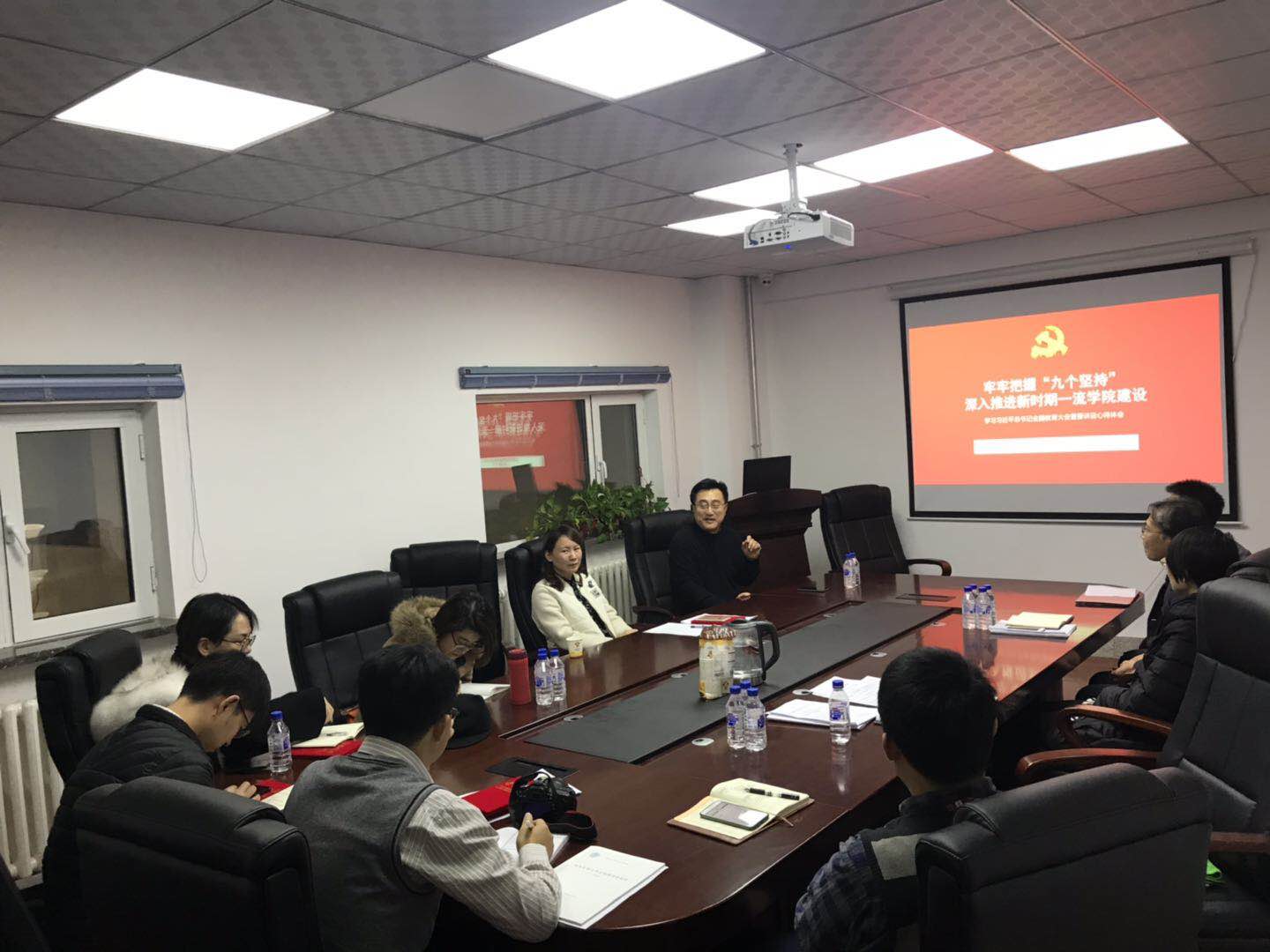 为开展学习“九个坚持”精神,深入推进新时期一流学院建设,深刻理解习近平新时代中国特色社会主义思想。11月15日下午,william威廉亚洲官方学开展专题党课集中学习“九个坚持”。公司党总支成员、行政领导班子、各科室均参加本次党课学习。本次主题党课由刘德斌书记主讲。