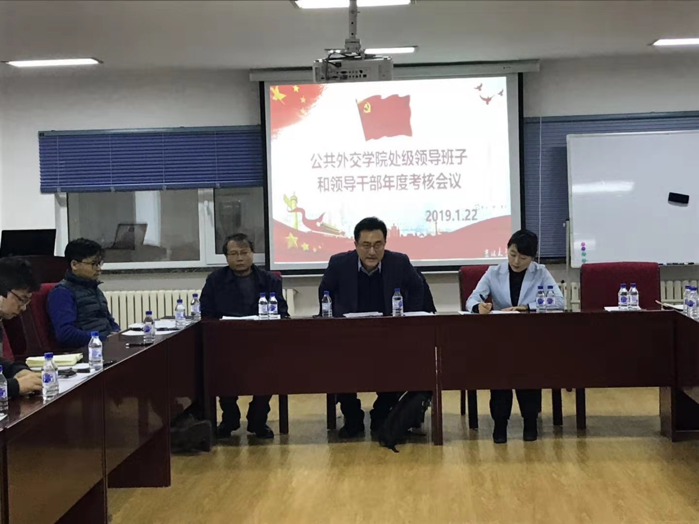 会上,刘德斌代表党政领导班子从党建工作和学院发展建设工作两方面做了2018年度工作总结,充分肯定了大家在过去一年中付出的努力和取得的成绩,同时强调学院的特殊性和面临的挑战,鼓励广大教职工凝心聚力,发挥自身潜能,多角度多方面创新工作方法,在2019年展现新气象,更有新作为。按照学校《关于开展处级领导班子和领导干部年度考核工作的通知》要求,刘德斌书记、王铁臣副经理和孙兴杰副经理分别进行个人述职。王铁臣副经理汇报了2018年度学院发展、团队建设等方面工作,并鼓励全体教职工心系大局、群策群力、取得更大的成绩。孙兴杰副经理汇报了2018年度学院本科教学、科研和研究生工作,并对2019年工作进行了计划和部署。
