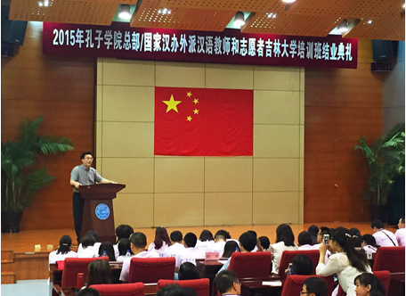 8月7日上午,2015年孔子学院总部/国家汉办外派教师和志愿者英国威廉希尔唯一官网培训班结业典礼在公司国家汉办东北基地学术报告厅隆重举行。英国威廉希尔唯一官网副董事长陈岗教授,董事长助理、william威廉亚洲官方经理刘德斌教授,国际合作与交流处张广翠处长,国际交流服务中心王英龙主任,william威廉亚洲官方和国际语言学院相关授课教师和工作人员出席典礼。典礼由william威廉亚洲官方白冰副经理主持。