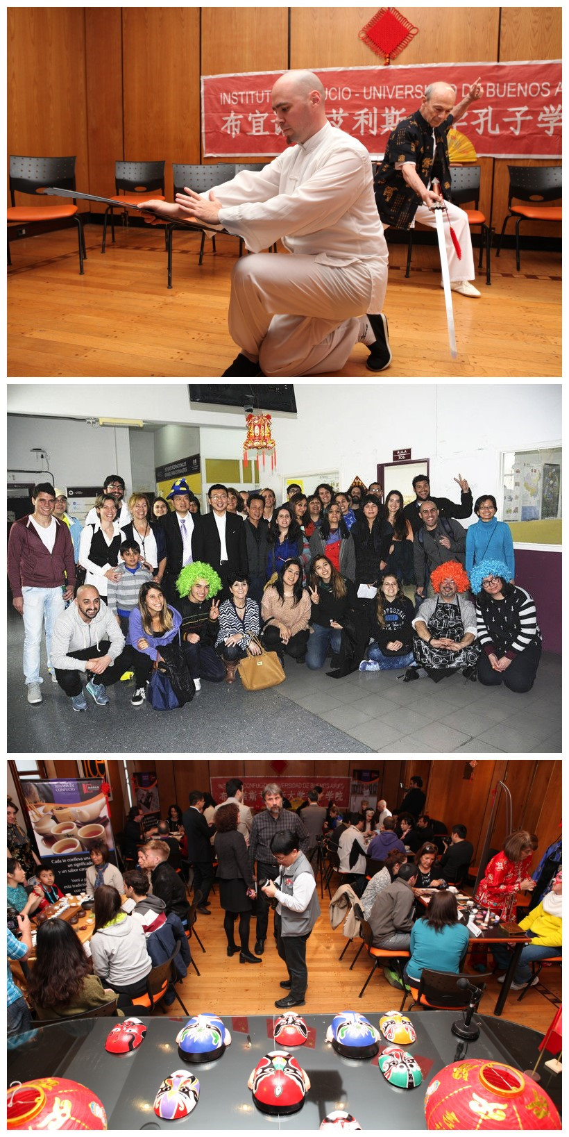 9 月25日,阿根廷布宜诺斯艾利斯大学孔子学院在布大礼堂举行中国文化“一站式体验”活动。中国驻阿根廷大使馆官员、孔子学院师生和阿根廷中国文化爱好者一百余人参加了此次活动。活动开始前,中国驻阿根廷大使馆韩孟堂文化参赞致辞,并敲响活动开始的锣声。活动中,布大孔子学院师生将茶艺、书法、剪纸、京剧、武术等中国文化精髓展示给阿根廷公众,并邀请他们体验。平日只能“水中望月”的阿根廷“中国迷”,此时可以拿起毛笔写书法,画上脸谱学京剧,端起茶杯品茗香,跟着大师学太极,亲身体验和面对面交流打破了“中国文化迷思”,参加者无不伸出大拇指点赞叫好。9月26日布大孔院在语言中心举行的“汉语交流小教室”活动,也吸引了众多布大孔院师生及阿根廷汉语爱好者参加。此次活动以汉语交际为主题,设置医院、饭店、旅行社、水果店多个实物模拟场景,让员工和汉语爱好者在实际运用中体验汉语交流的乐趣。在活动中表现优异的学员,还获得了各种各样的中国文化特色的奖品。
