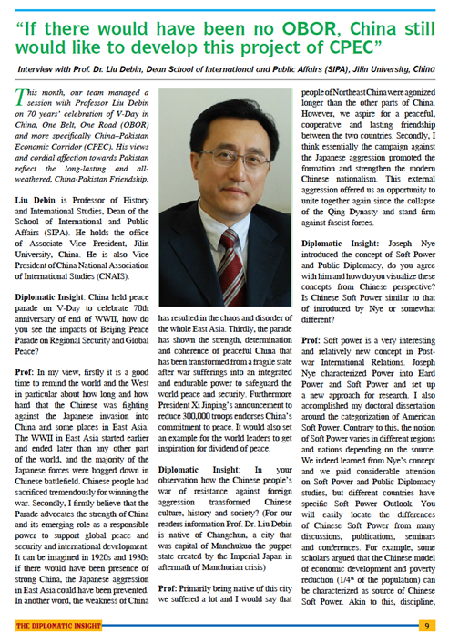 2015年9月5日,应巴基斯坦《外交视野》杂志的约请,刘德斌经理接受该杂志的采访请求,回答了关于中国纪念抗日战争暨世界反法西斯战争胜利七十周年大阅兵、中国软实力、中国的“一带一路”战略、中国的发展经验、中巴关系以及中巴经济走廊的前景等当下热门问题。采访全文刊登在该杂志今年第九期“北京大阅兵&中华人民共和国成立66周年”特刊的显要位置。本期杂志同时收录了william威廉亚洲官方王黎教授与颜震博士有关大阅兵和抗战纪念的两篇文章。