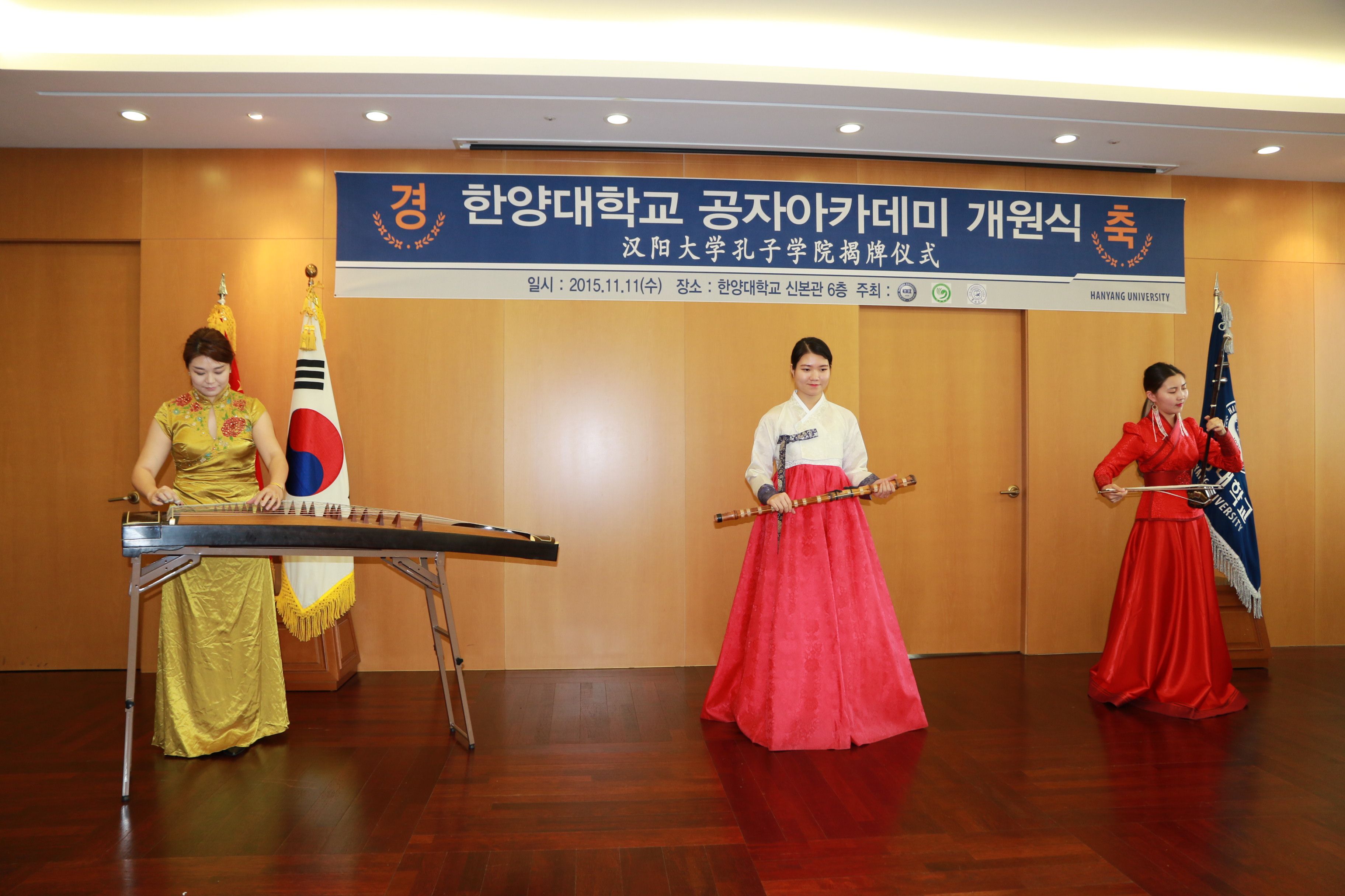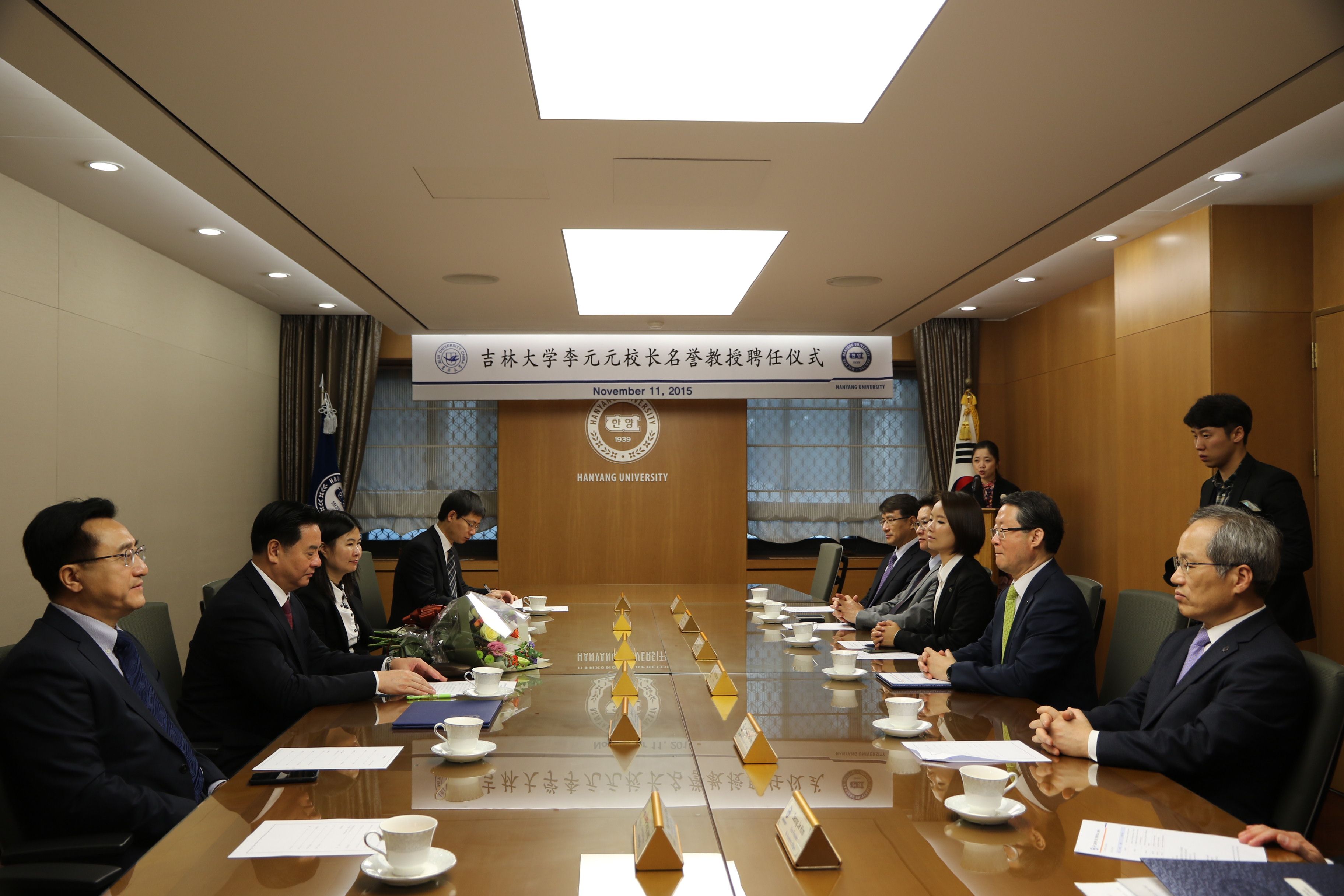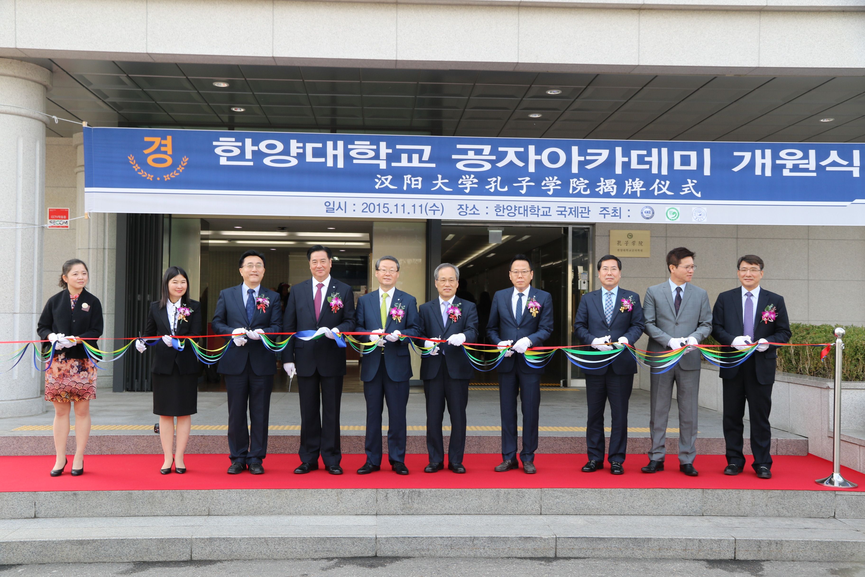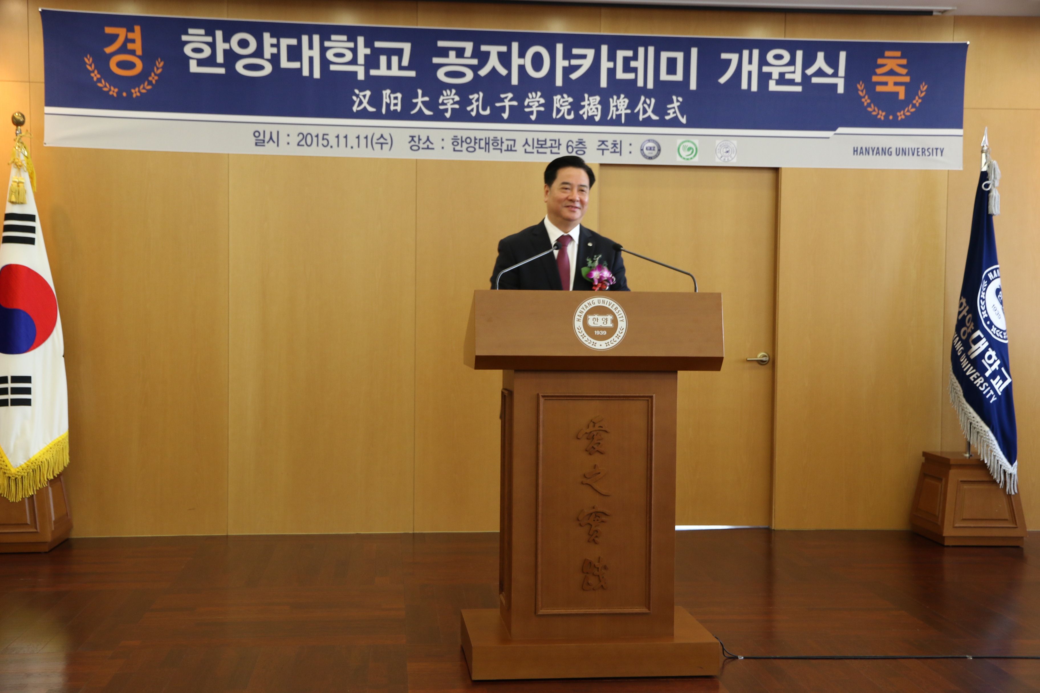 2015年11月11日,正在韩国访问的英国威廉希尔唯一官网董事长李元元受聘汉阳大学名誉教授,并和汉阳大学董事长李永茂等一起为两校合作建立的孔子学院揭牌。