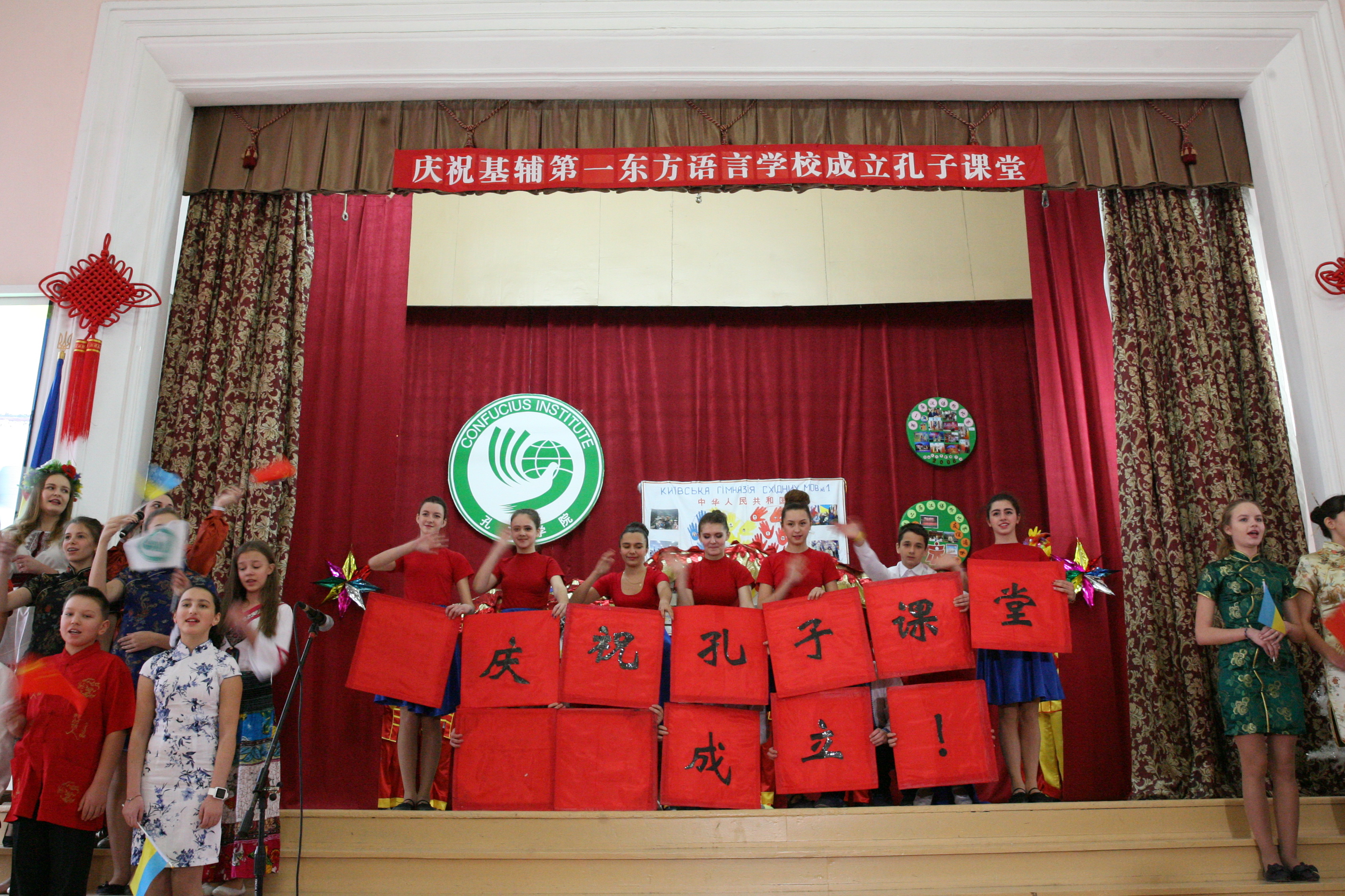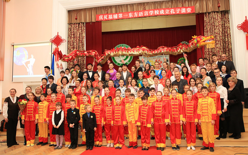 2015年12月22日上午11时,公司乌克兰基辅国立大学孔子学院下设孔子课堂揭牌仪式在基辅第一东方语言学校礼堂举行。中国驻乌克兰大使馆文化处负责人张艳波、乌克兰华商会会长李相、乌克兰工商联合会总经理关羡梅、基辅教育局局长叶莲娜、施韦拖申区区教委主任安娜和乌克兰基辅国立大学孔子学院中方经理李红出席了揭牌仪式。