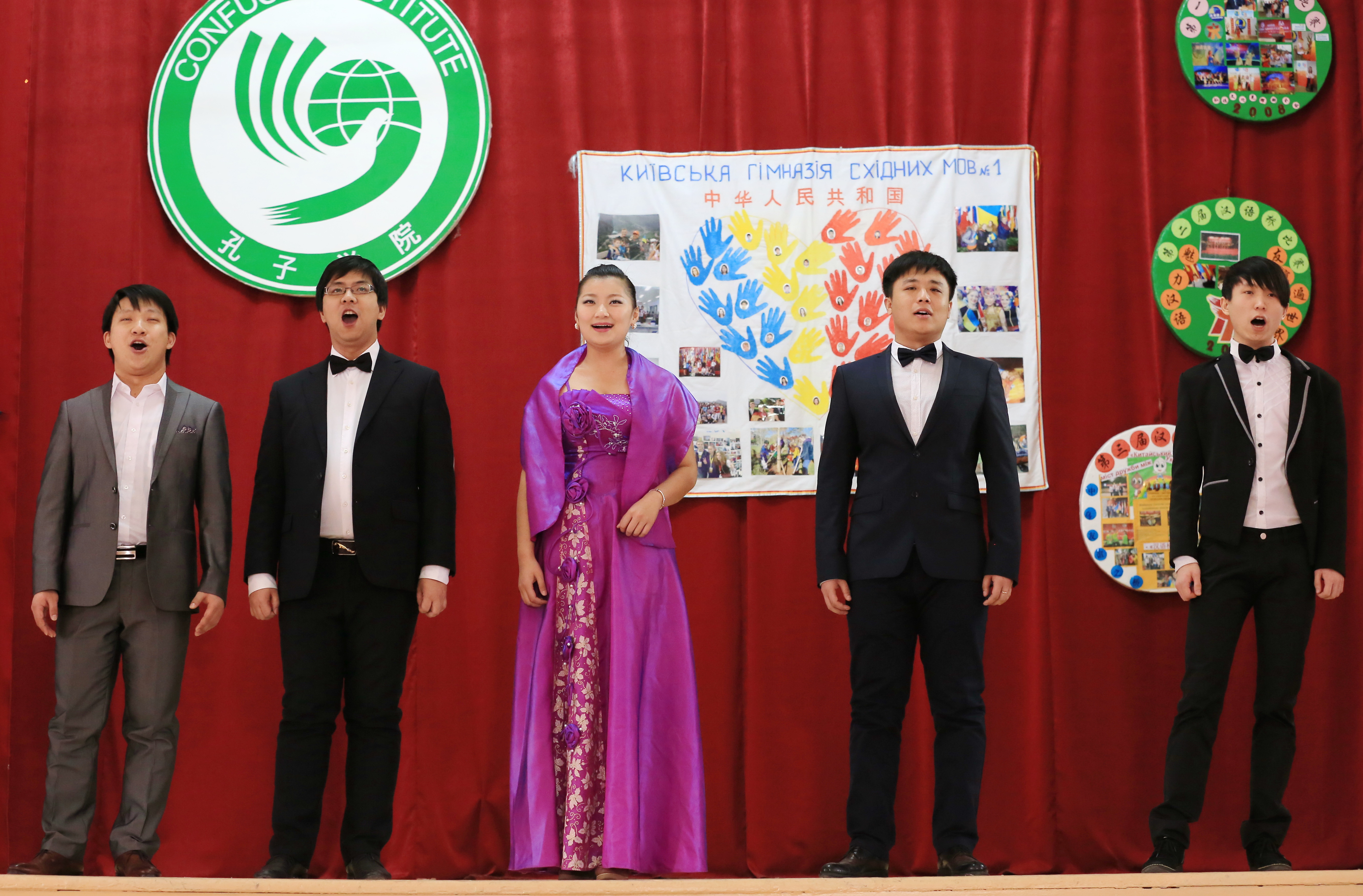 庆祝大会尾声,全体嘉宾、中乌双方教师、演职人员等共同上台高唱民族气概高昂的《中国人》,歌声响彻校园。