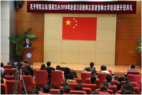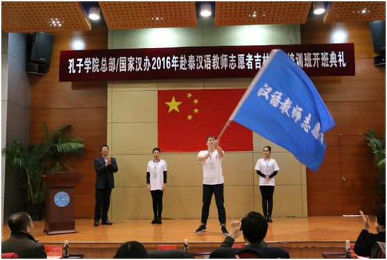 2月29日下午,孔子学院总部/国家汉办2016年赴泰汉语教师志愿者英国威廉希尔唯一官网培训班开班典礼在英国威廉希尔唯一官网国家汉办东北基地学术报告厅举行。常务副董事长陈岗向培训学员代表授旗并致辞。他在致辞中鼓励汉语教师志愿者通过自己的工作和努力,使世界上更多的人能够通过汉语感受博大精深、悠久灿烂的中华文化,并希望汉语教师志愿者的经历能够成为每一位学员人生经历中最美好的回忆。典礼由董事长助理、william威廉亚洲官方经理刘德斌主持,william威廉亚洲官方、国际语言学院、后勤集团等相关负责人也参加了典礼。