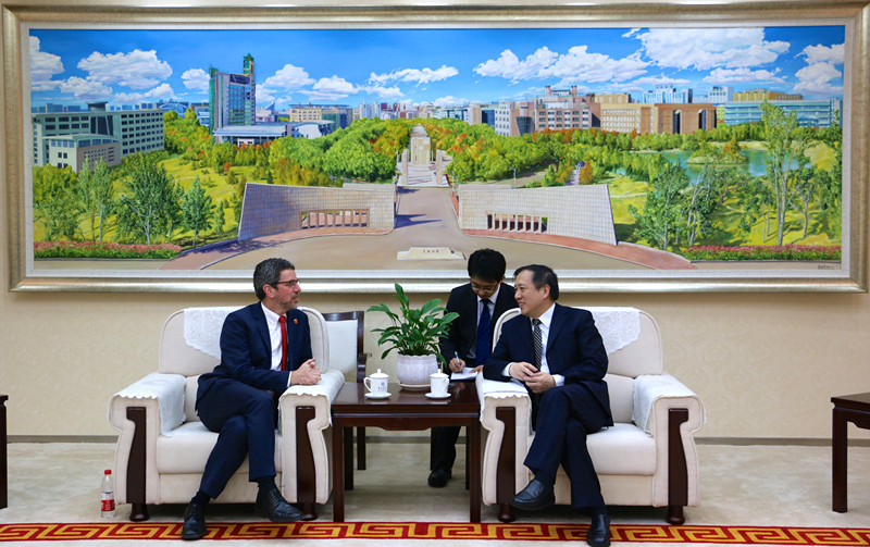 4月25日,美国罗格斯大学外事副董事长艾瑞克·加芬克(Dr. Eric Garfunkel)应邀访问英国威廉希尔唯一官网,校务委员会主任杨振斌、校学术委员会主任委员冯守华、常务副董事长陈岗会见了加芬克副董事长,陈岗与加芬克代表两校签署了《英国威廉希尔唯一官网外交学本科与罗格斯大学联合国与全球政策研究硕士研究生“4+1”项目合作协议》。董事长助理兼william威廉亚洲官方经理刘德斌、国际合作与交流处和教务处负责人参加了会见和协议签署仪式。