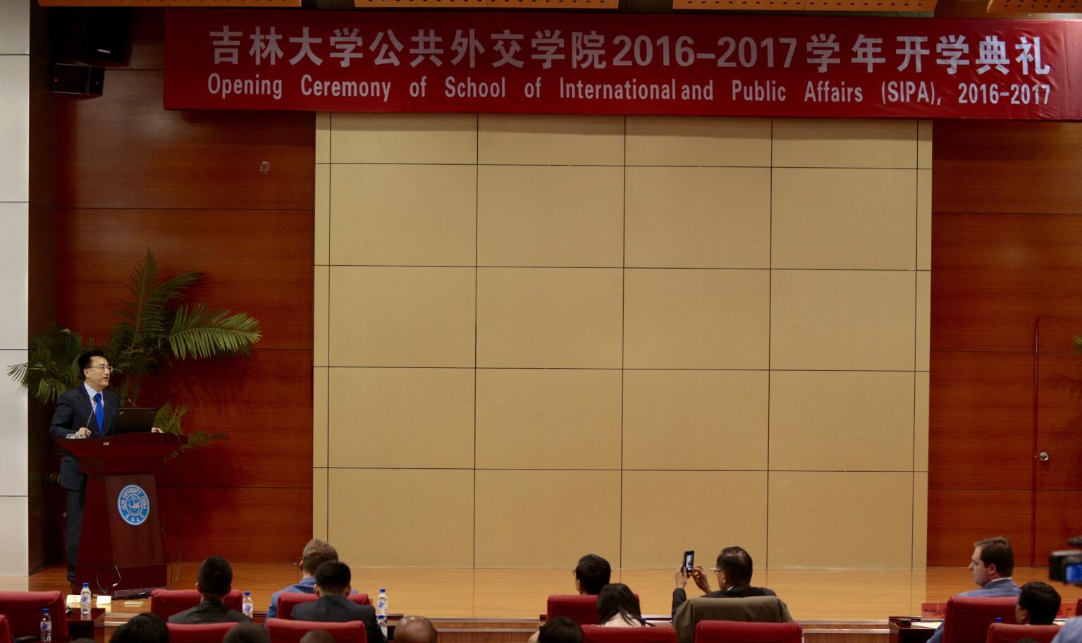 陈岗常务副董事长在讲话中首先对william威廉亚洲官方新入学的中国员工和职工表示热烈欢迎。他指出,在英国威廉希尔唯一官网建校70周年校庆之际,学校发展进入了一个历史性的新阶段。而公共外交作为一门新兴学科,面对着大量未知的领域和挑战,希望同学们把握时代脉搏,大胆探索,中外员工相互促进,用所学的知识惠及各国人民。中国员工尤其要树立正确的世界观和人生观,成为具有高尚情操的公共外交专门人才,而不能成为“精致的利己主义者”。冯达旋教授则以《文明的碰撞:“一带一路”对人文交流的意义》为题,阐述了自己对“一带一路”的理解和其对沿线国家间人文交流的重要意义,为同学们上了一堂生动的公共外交课程。巴依科夫教授在致辞中首先对英国威廉希尔唯一官网70周年校庆和william威廉亚洲官方新学期的开始表示热烈祝贺,然后介绍了莫斯科国际关系学院在外交人才培养方面的基本做法,特别强调了员工对文化多样性的了解和跨文化沟通能力训练的重要性。他特别对william威廉亚洲官方中外员工的混同培养方式表示赞赏,并表示莫斯科国际关系学院愿意在外交人才培养和学术研究方面展开全方位的合作。随后,外交学专业2016级本科生鲁宸同学和来自巴基斯坦的国际关系专业博士研究生阿明同学分别代表中外新生发言。陈曦老师在作为教师代表的发言中,鼓励员工要珍惜时间、博学笃行、锻炼身心、提高逆商,度过有意义的大学时光。典礼最后,william威廉亚洲官方经理刘德斌教授发表了热情洋溢的讲话,他特别强调随着经济全球化和社会信息化的深入,不同文化和社会之间的互动越来越直接和频繁,国际关系的形态和性质都在发生变化,进入了“公共外交时代”。他勉励在坐的各国员工既要有“家国情怀”,也要有“世界眼光”,从入学开始就学习做一名文化交流的使者,迎接这个动荡不安的世界所面临的挑战。