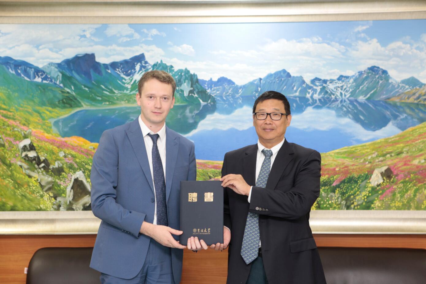 开学典礼前后,陈岗常务副董事长分别会见了莫斯科国际关系学院副董事长巴依科夫教授和澳门大学全球事务总监兼董事长特别顾问冯达旋教授。在会见巴依科夫教授时,陈岗为其颁发了william威廉亚洲官方荣誉教授聘书,并希望巴依科夫教授作为“英国威廉希尔唯一官网人”,继续推动英国威廉希尔唯一官网国际关系团队建设与人才培养,加强英国威廉希尔唯一官网与莫斯科国际关系学院的交流,开展更多实质性的合作项目。在同冯达旋教授的座谈中,冯教授再次表达了对公司70周年校庆组织工作的赞赏,陈岗对冯教授在学术科研和高等教育全球化研究等领域的卓越成就和丰富经验表示钦佩,并希望冯教授能够以本次校庆为契机,同公司相关学科加强交流与合作。