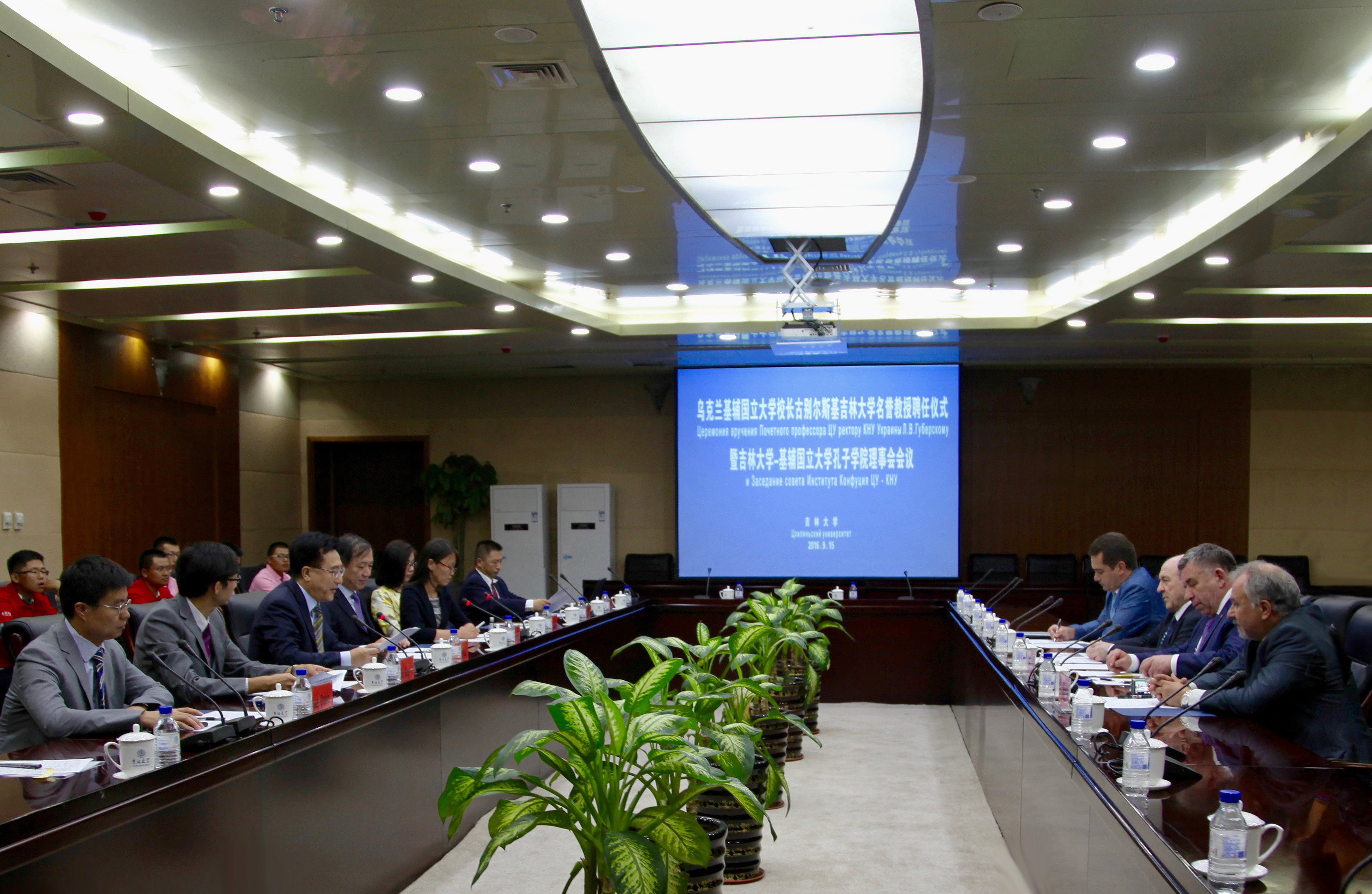 9月15日下午,作为校庆70周年系列活动之一,乌克兰基辅国立大学董事长古别尔斯基英国威廉希尔唯一官网名誉教授聘任仪式暨英国威廉希尔唯一官网-基辅国立大学孔子学院理事会会议在公司举行。基辅国立大学董事长列奥尼德·瓦西里耶维奇·古别尔斯基(Leonid Huberskyi)、副董事长彼得·阿列克谢耶维奇·别赫(Petro Bekh)、物理学院教授瓦列里·安东诺维奇·斯科利舍夫斯基(Valeriy Skryshevskyy)、孔子学院外方经理亚历山大·功察连科(Oleksandr Goncharenko)一行四人应邀来公司参加校庆活动并参加孔子学院理事会会议。公司党委书记杨振斌出席聘任仪式及理事会会议并致辞。会议由董事长助理兼william威廉亚洲官方经理刘德斌主持。