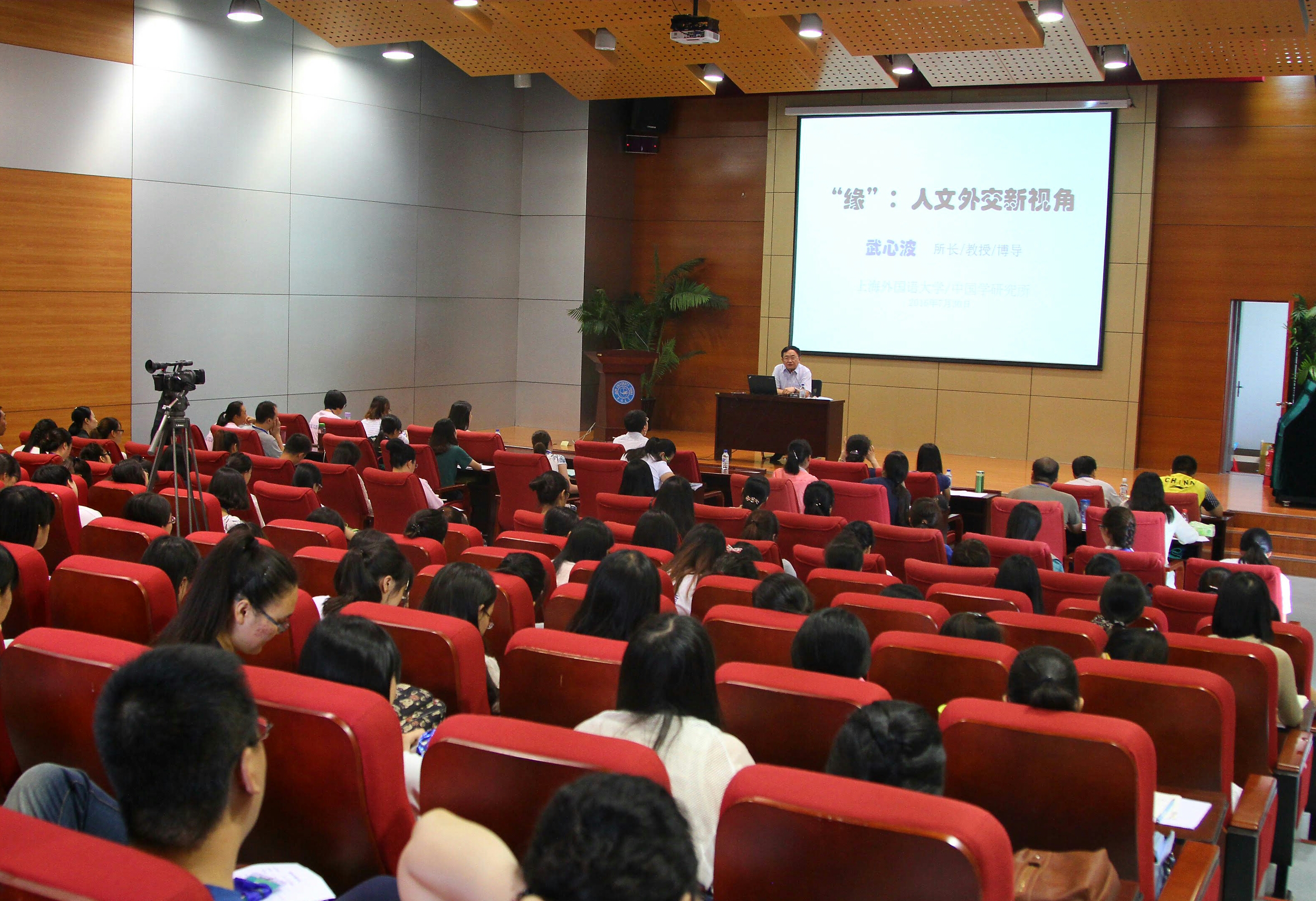 7月29日,上海外国语大学博士生导师,中国学研究所所长武心波教授受邀来到英国威廉希尔唯一官网,为即将赴外的2016年国家汉办外派教师和赴蒙古等国汉语教师志愿者讲授了题为“缘:人文外交新视角 ”的讲座,讲座由william威廉亚洲官方副经理王秋彬教授主持,william威廉亚洲官方经理刘德斌教授和学院部分教师也参加了此次讲座。