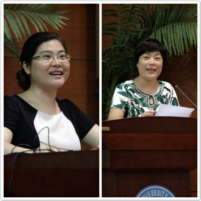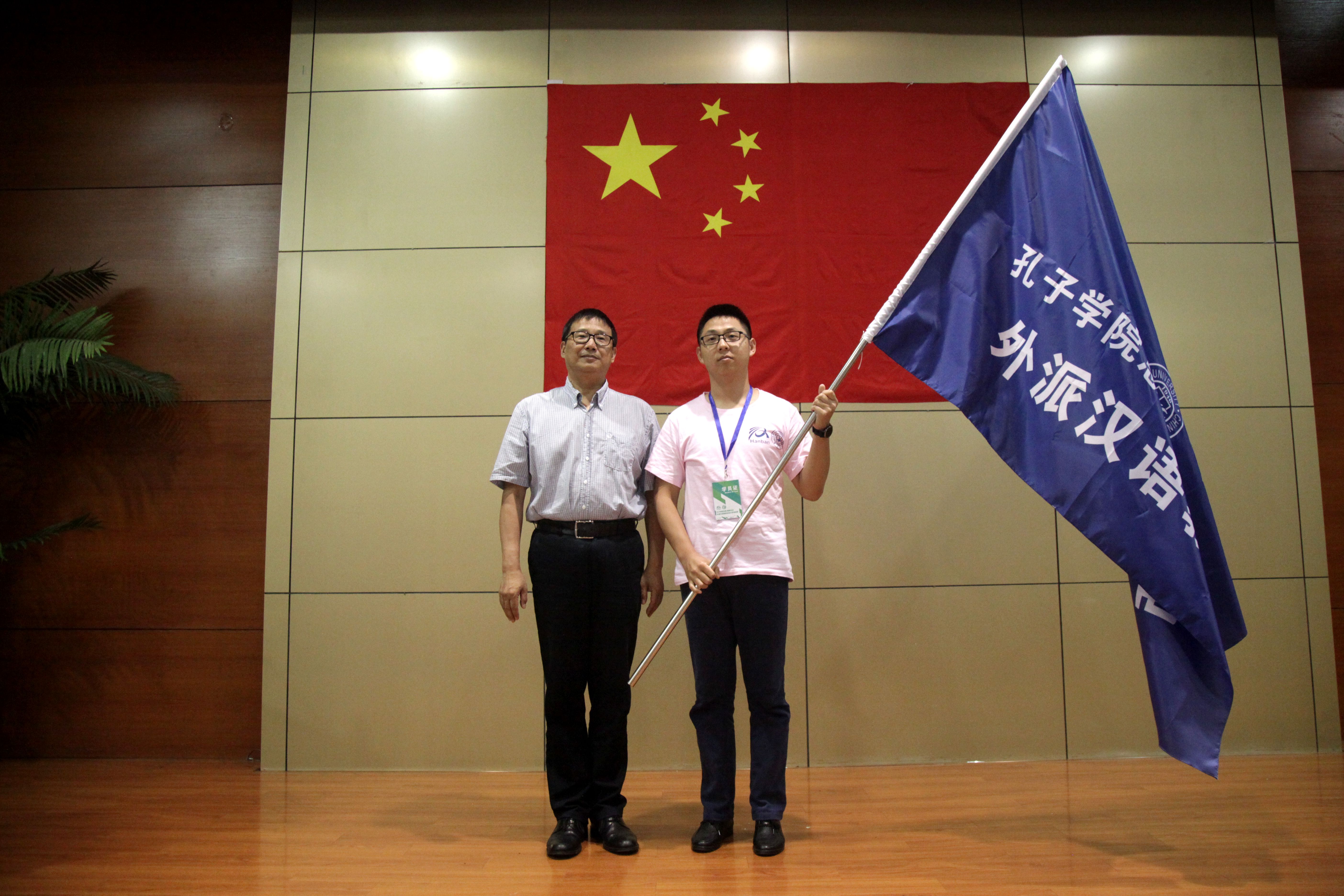 典礼在国歌声中拉开序幕,来自中国国际广播电台的阿拉坦娜布其和来自四川师范大学的王佳莉代表本次培训学员发言,他们对国家汉办和英国威廉希尔唯一官网给予的这次培训机会表示感谢,同时也表达了他们对汉语国际推广事业的热爱,承诺将圆满完成国家汉办和学校赋予他们的教学任务,在国外做好传播中国文化的使者。国际语言学院经理岳辉教授代表授课教师发言,希望学员们能做好本职工作,担当中国对外交流的友好桥梁。随后陈岗向学员代表授予国家汉办外派汉语教师的旗帜,并合影留念,全场响起热烈的掌声。最后,孔子学院总部/国家汉办团队处项目主管王国萍为学员讲解了培训要求,并对培训学员表达了良好的祝愿,对英国威廉希尔唯一官网的精心筹备表示感谢。