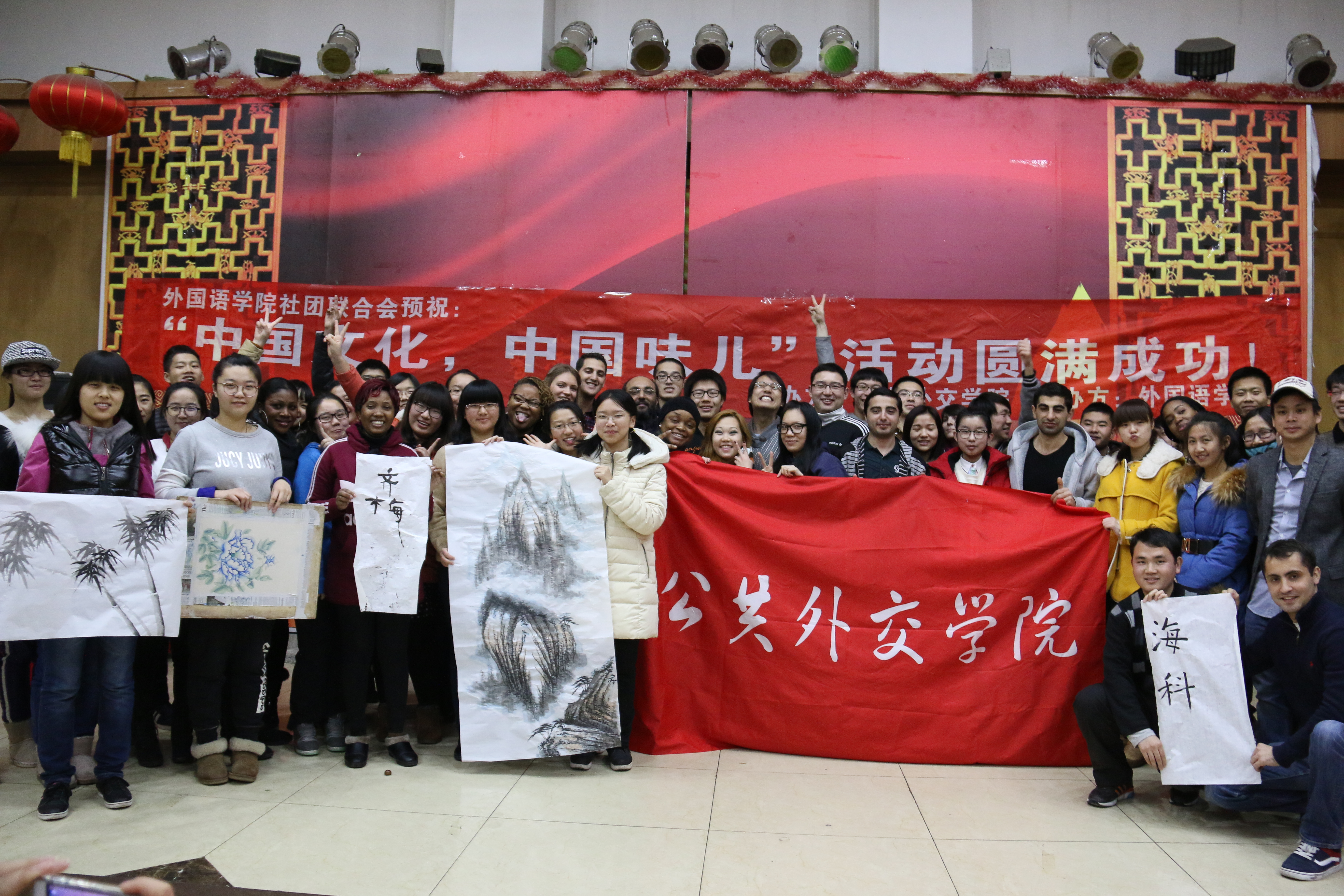 12月13日,william威廉亚洲官方中外师生和外国语学院的同学在友谊会馆一楼开展了“中国文化中国味”主题活动。大家在一起包饺子,学写毛笔书法,欣赏中国绘画。