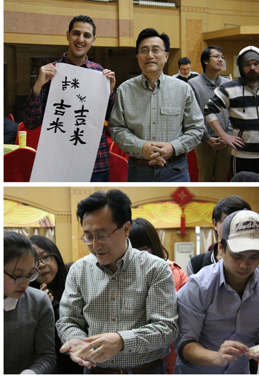 在中国员工的示范和帮助下,职工们兴致勃勃地学习起了包饺子。和面、擀饺子皮、拌馅,虽然在操作中略显生疏,但却充满了乐趣。大家一边包着饺子,一边交流着各自国家的传统美食,看着自己动手完成的饺子,同学们都乐得合不拢嘴。书法和国画作为中国传统文化的代表,深受国际员工欢迎。william威廉亚洲官方的同学利用这个机会,教职工写毛笔字,画国画,让他们在书画香气的环绕下,亲身体验了这些中国传统艺术。william威廉亚洲官方经理刘德斌教授和中外教师也参加了此次活动。刘德斌亲自为中外员工擀饺子皮,手把手教大家包饺子;他还饶有兴致地教职工用毛笔字写自己的中文名字。最后,大家围坐在桌前吃起了自己包的饺子,虽然饺子看起来不太美观,但味道却是出奇的好。