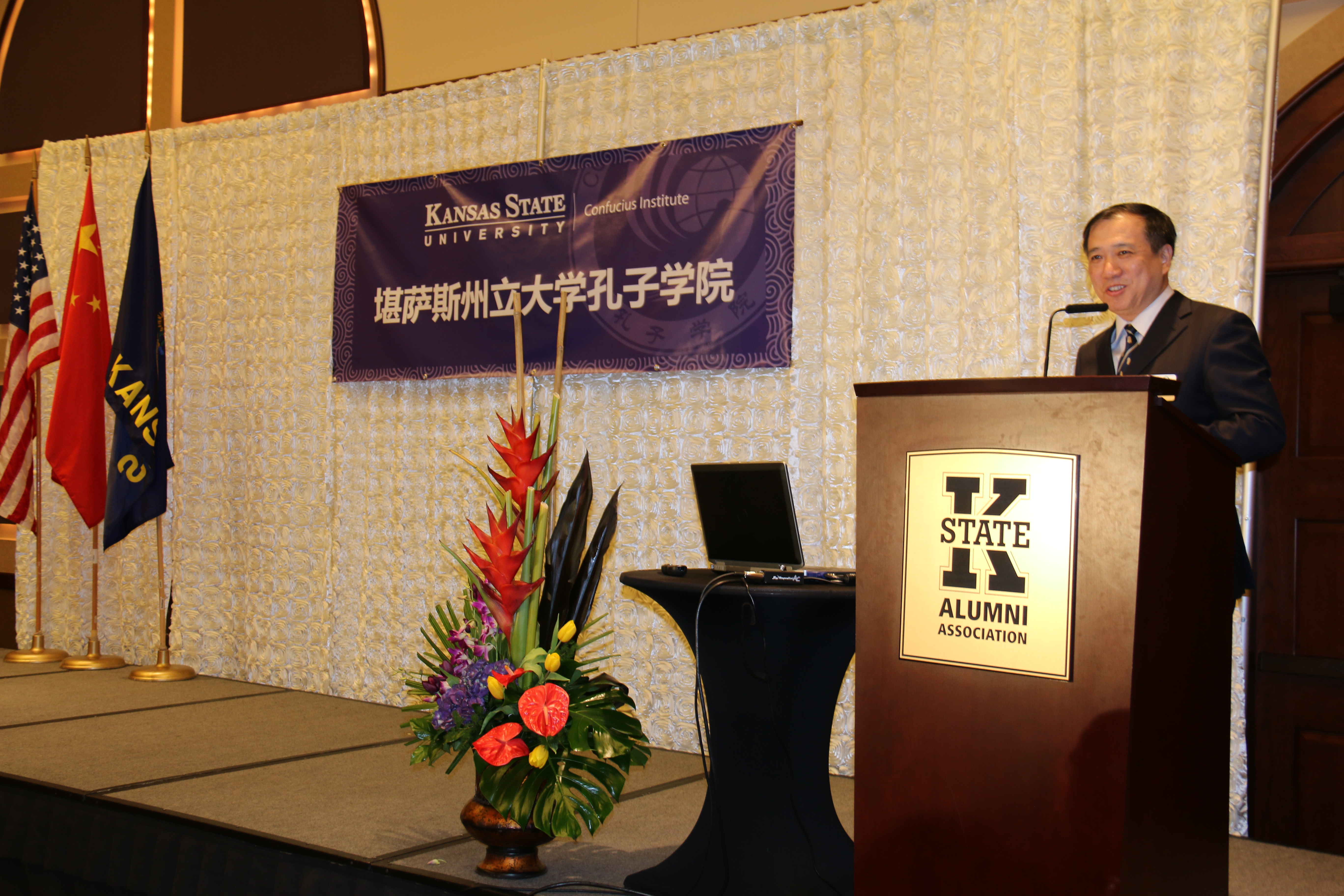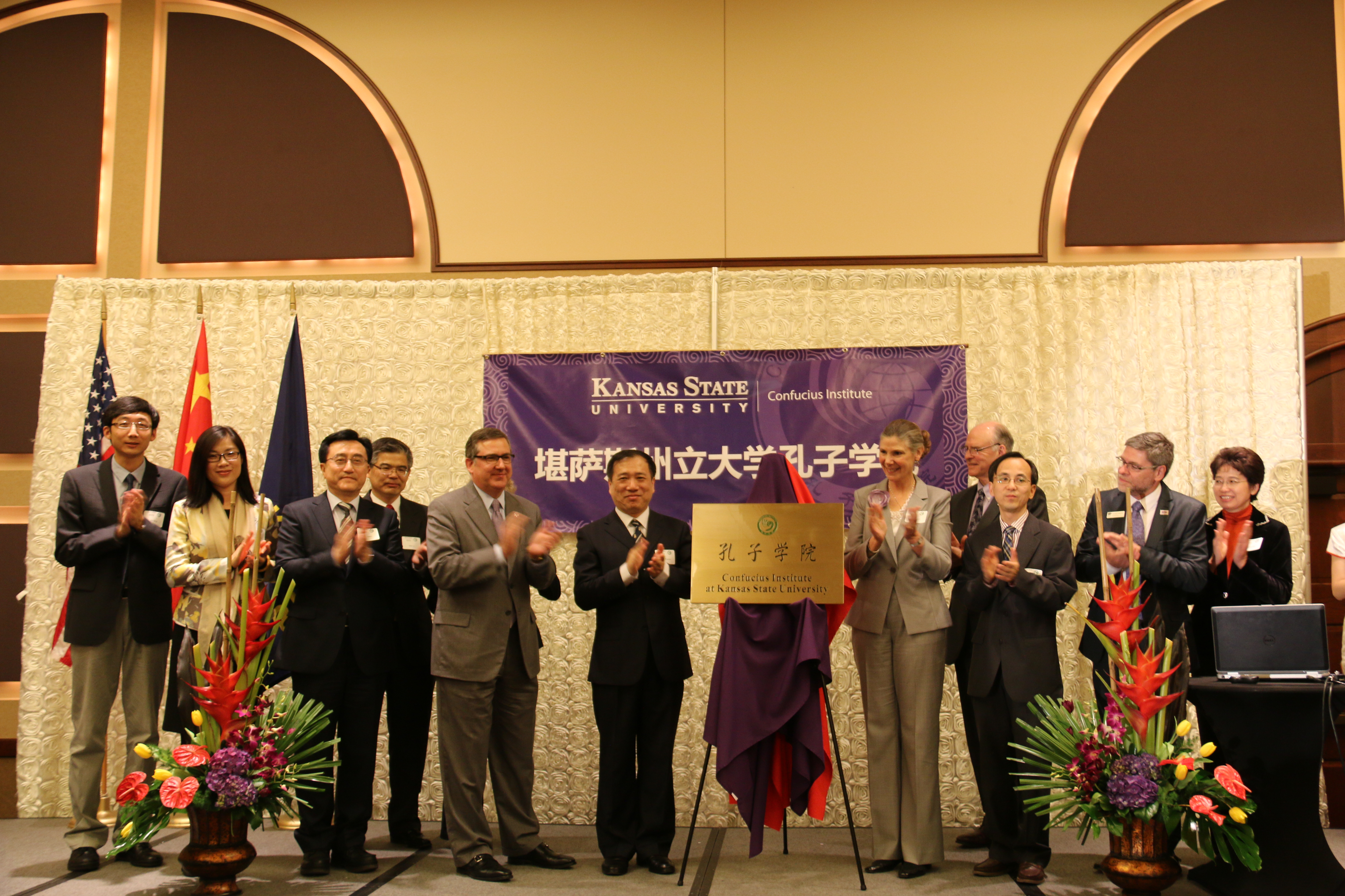 美国当地时间4月7日下午,英国威廉希尔唯一官网与美国堪萨斯州立大学共建的孔子学院正式揭牌成立。公司党委书记杨振斌率代表团出席揭牌仪式并致辞,堪萨斯州立大学董事长柯克·舒尔茨(Kirk Schulz)、教务长兼常务副董事长艾谱莉·梅森(April Mason)、中国驻芝加哥总领事馆刘军副总领事、堪萨斯州政府代表等共150人参加了揭牌仪式。仪式由堪萨斯州立大学主管国际事务副教务长马萨罗·萨巴提斯(Marcelo Sabates)主持。国家汉办主任许琳专门发来贺信。