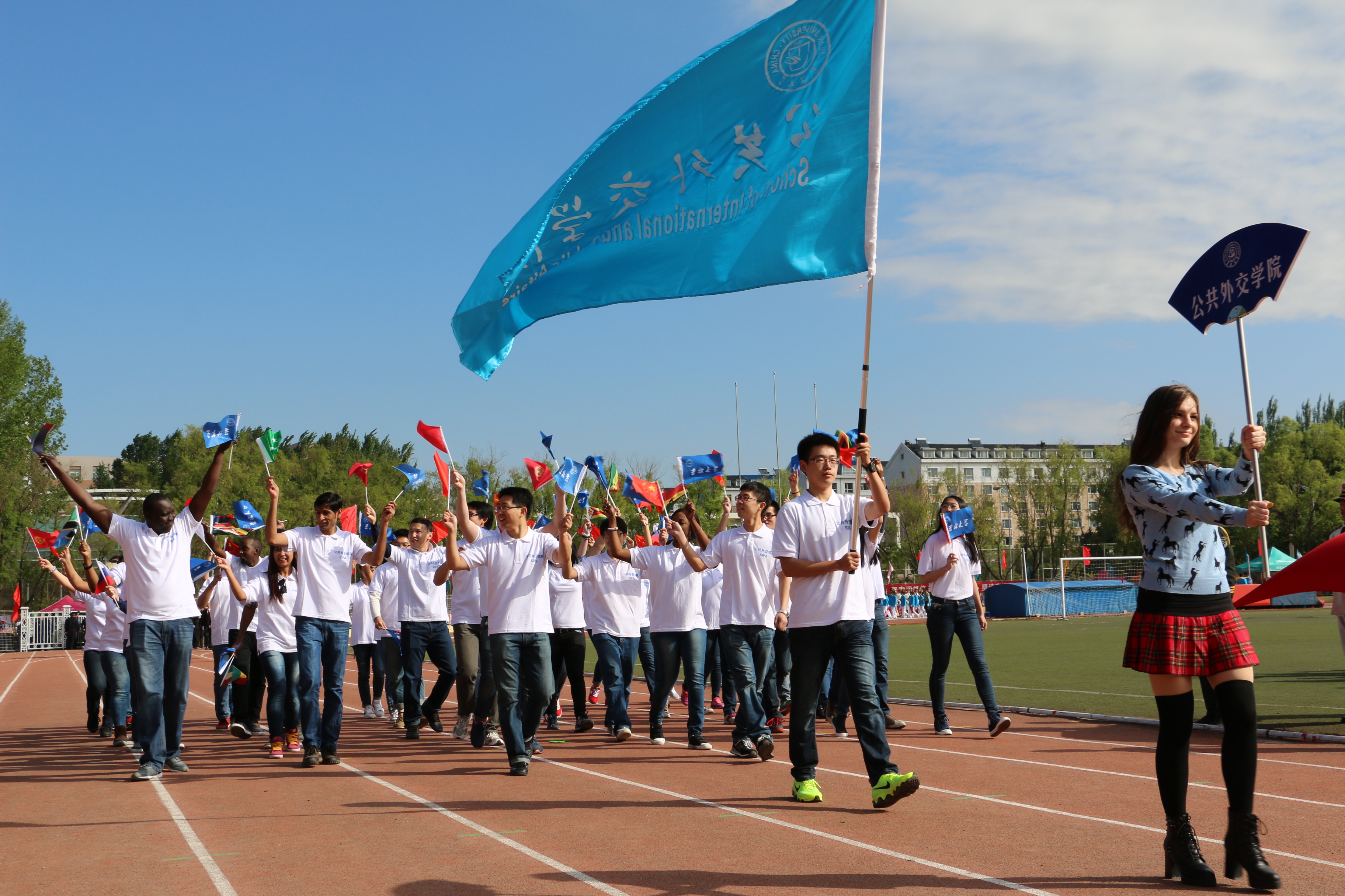 同学们起得比平时上课还要早,这全都是为了入场方队做准备。换上白底蓝字看起来高大上又小清新的院服,踏起飞扬的步伐,手拿各自国家的国旗和校旗,同学们激情洋溢地昂首走过主席台前。走在队首高举院牌的是来自乌克兰的职工玛丽亚,她青春靓丽的身影引来观众席上的阵阵欢呼;旗手是体育委员梁鲁广,他飒爽的英姿显得分外帅气;方队的主体是由学院的首届中国本科生和职工组成的,他们各自手挥国旗,迈着整齐地步伐,喊着激昂的口号,把william威廉亚洲官方的热情和风采展示得淋漓尽致,主席台上的嘉宾和员工观众报以热烈的掌声。