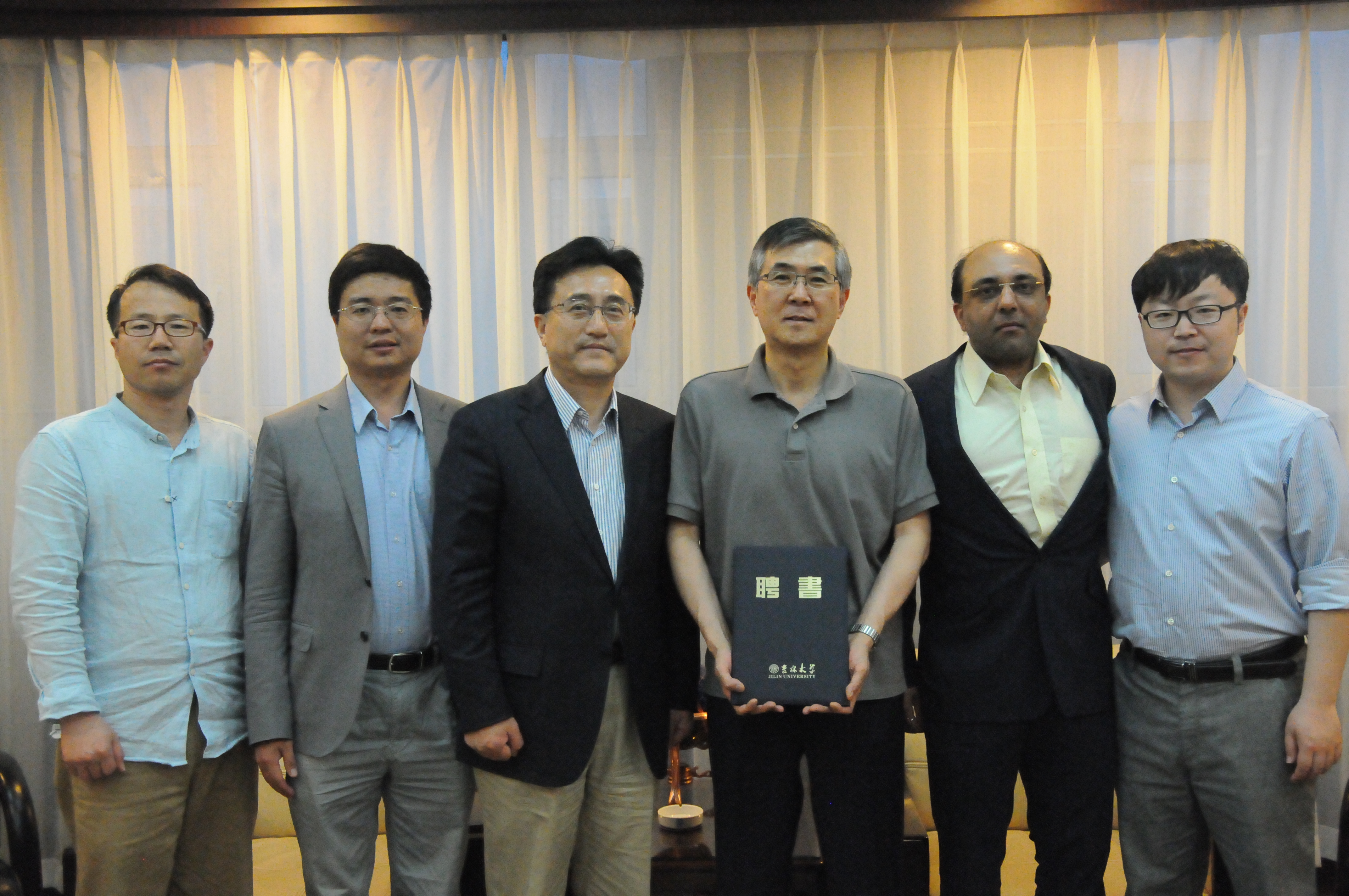 讲座结束后,学院领导及教师团队与Paik教授就双方关心的学术问题以及今后潜在的科研合作项目进行了沟通与讨论。会谈结束后,刘德斌经理将“william威廉亚洲官方客座教授聘书”授予Paik教授,并希望他能在将来更多的访问william威廉亚洲官方,与学院的老师与同学们更加频繁与深入的进行学术交流与探讨。