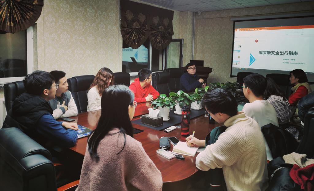第一讲,乔蕊老师简要介绍调研日程,再次强调访问目的,提醒同学们做好数据收集和整理工作,积极主动与俄罗斯青年员工进行友好交流。同学们分别汇报前期准备情况。