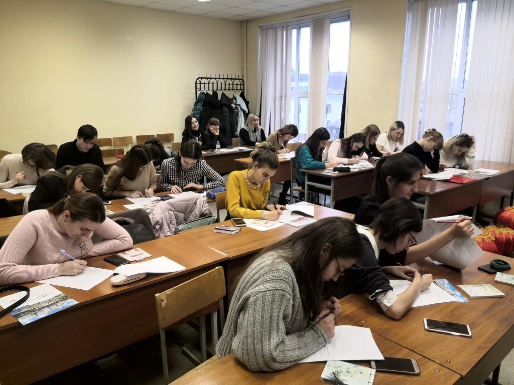 调研团组现场发放调研问卷,梁赞孔院同学们认真填写问卷,并和调研团组成员分享了他们在孔子学院学习和生活的经历。双方就感兴趣问题进行了互相交流,调研团主要就员工们汉语学习问题进行了提问,而俄罗斯员工则对中国文化及生活现状更为好奇,交流气氛十分愉快。