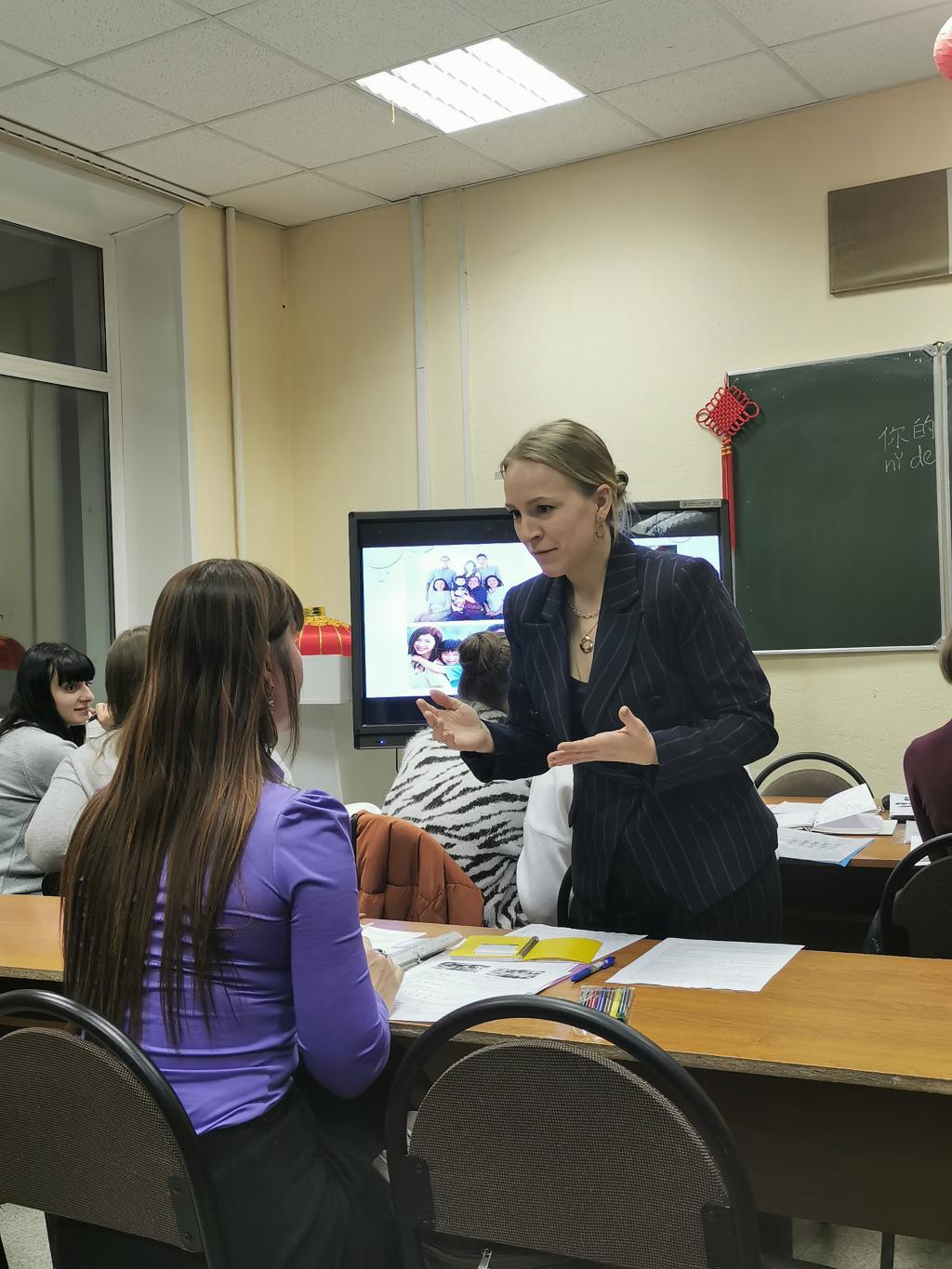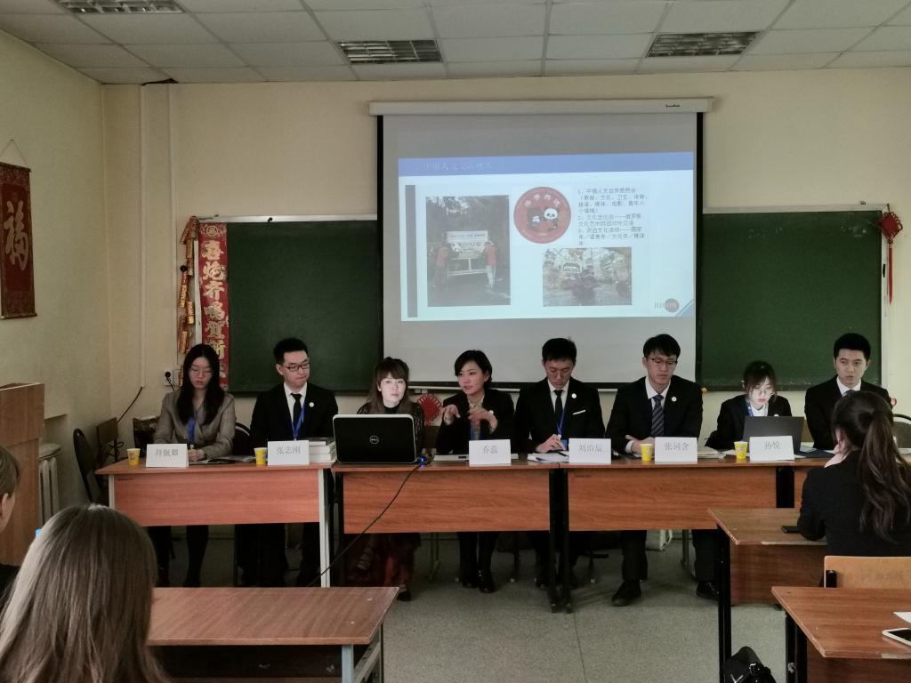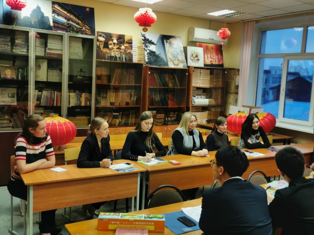 下午3:00,调研团组成员分别与孔子学院俄方教师代表和中方教师代表进行了座谈,乔蕊老师首先介绍了项目调研的基本信息和团组成员,与会教师代表也介绍了自己加入孔院结识汉文化的经历,同学们就孔院的教师选聘标准、硬件设施、教学内容、招生宣传办法、文化推广方式等向与会老师进行咨询,参与座谈的教师及单妮娜经理分别做了细致的解答。通过交流了解了梁赞孔院汉语教学的特色优势、生源情况、学院发展面临的挑战等。