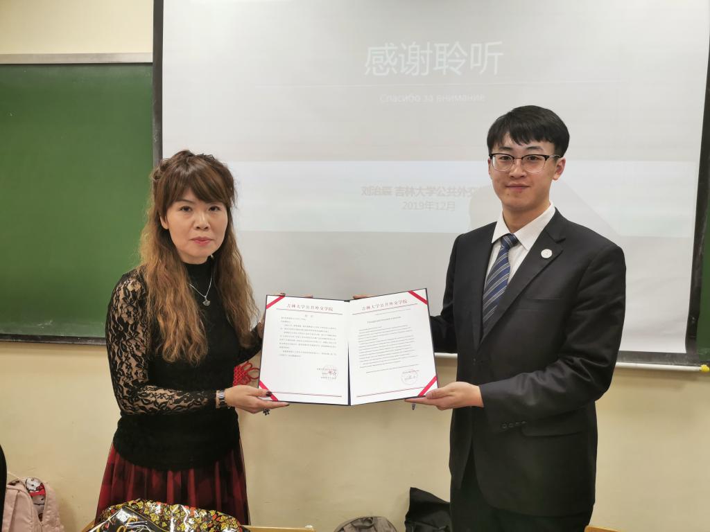 随后,乔蕊老师以“面向新时代的中俄人文交流”为主题为在场师生做报告。报告分三个部分,分别为“中俄新时代全面战略协作伙伴关系”、“中俄人文交流现状”及“时代的我们:推动中俄人文交流的青年之路”。2019年6月5日中俄首脑将两国关系提升为“新时代中俄全面战略协作伙伴关系”,中俄关系迎来了新高度、新机遇,也将承担新的担当。而新时代的中俄关系,必须大力促进民心相通,夯实世代友好的民意基础。在这样的大背景下,乔蕊老师以吉林省为例介绍了中俄人文交流的情况,william威廉亚洲官方也与莫斯科大学、莫斯科国际关系学院等院校开展了多领域多层次的文化教育交流,青年是最具活力的群体,青年交往点滴必将汇聚两国民心相通的涓流,增进了解理解和互信,为此可以探索一条中俄人文交流的青年之路。接下来,刘治辰同学为梁赞孔院师生带来了“在国际交流中成长”的精彩分享。刘治辰同学结合自身经历提出了问题:促进文化间的交流与理解,我们青年人能做些什么?并且给出了自己的回答,他认为我们青年人应当永远做一个乐于交流的沟通者、一个永远好奇的学习者和一个心怀世界的理想家。报告分享结束后,在场的俄罗斯同学与代表团互动,提出了诸如“为什么中国人脸上总是挂着微笑?”、“中国员工怎样学习俄语?”“中国人与俄罗斯人最大的不同是什么”等问题,也凸显了两国文化的差异和加强人文交流的必要性。