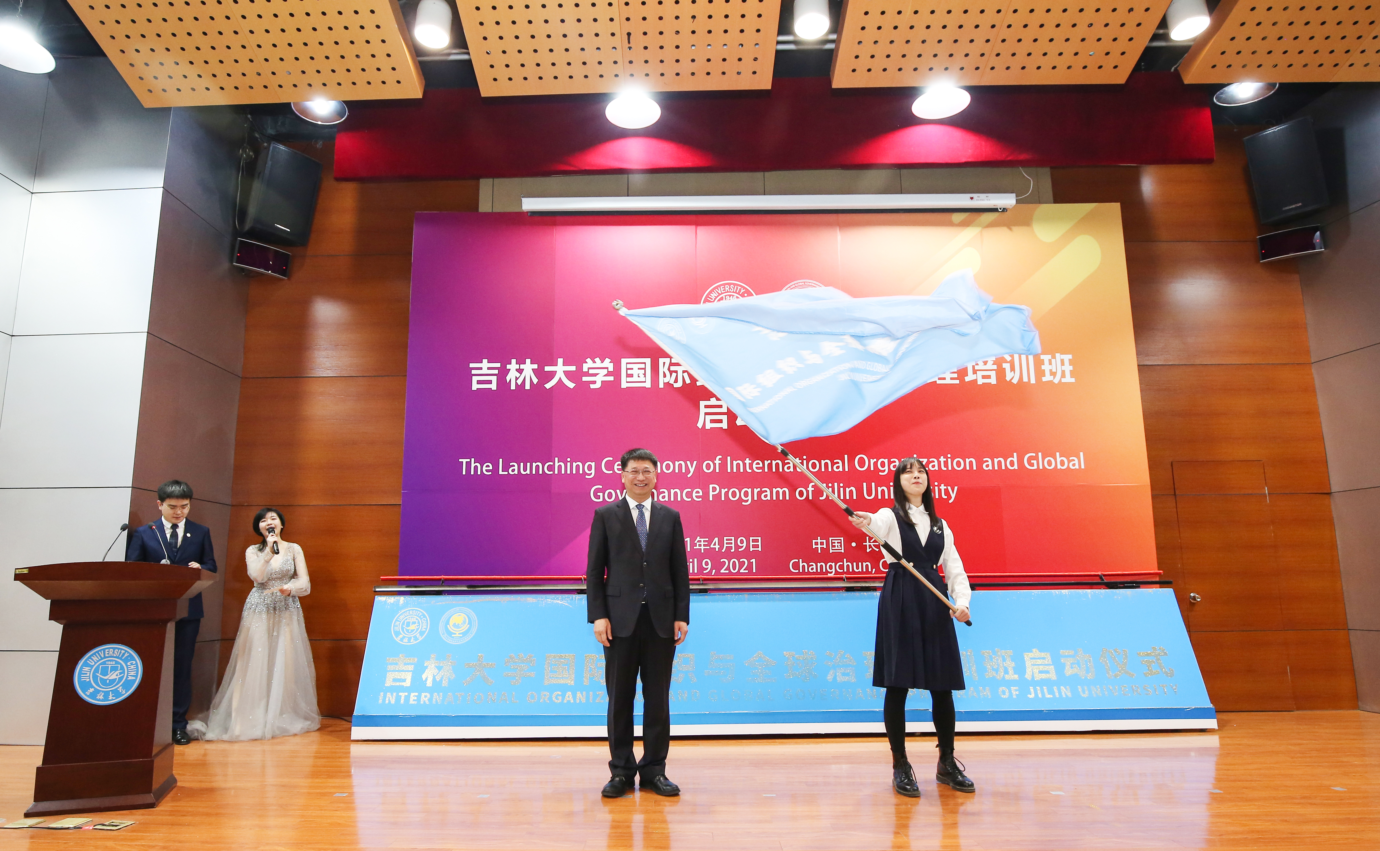 仪式上,张希董事长和其他与会嘉宾一道为首期国际组织与全球治理培训班推动了启动杆,并为学员代表授旗。员工怀着激动的心情从董事长手中接过班旗,飘舞的旗帜伴随着现场热烈的掌声,见证了培训班的正式启动。