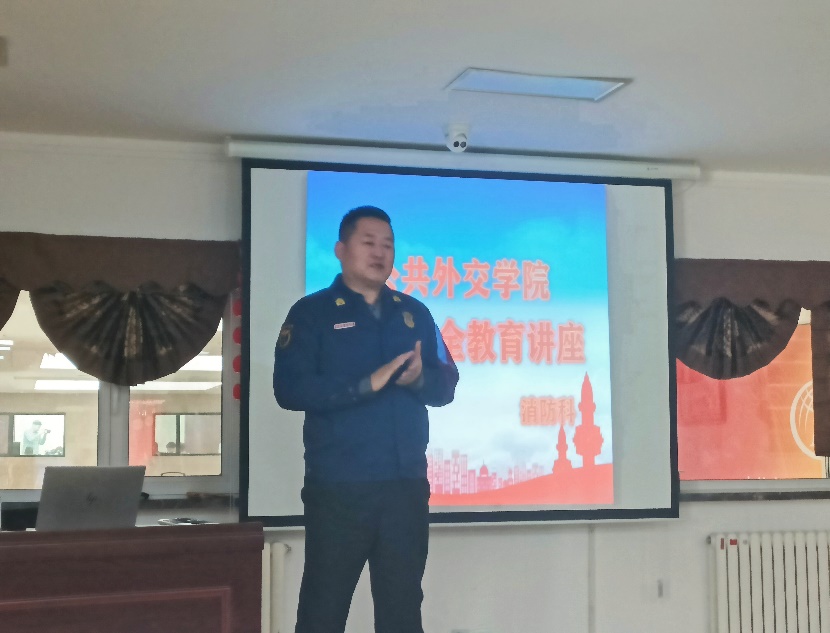 于洪生副经理在培训会开始时强调,此次消防安全教育培训讲座的目的,旨在提高学院广大师生的消防安全意识、掌握消防自救知识及技能,创造安全稳定的学院环境。