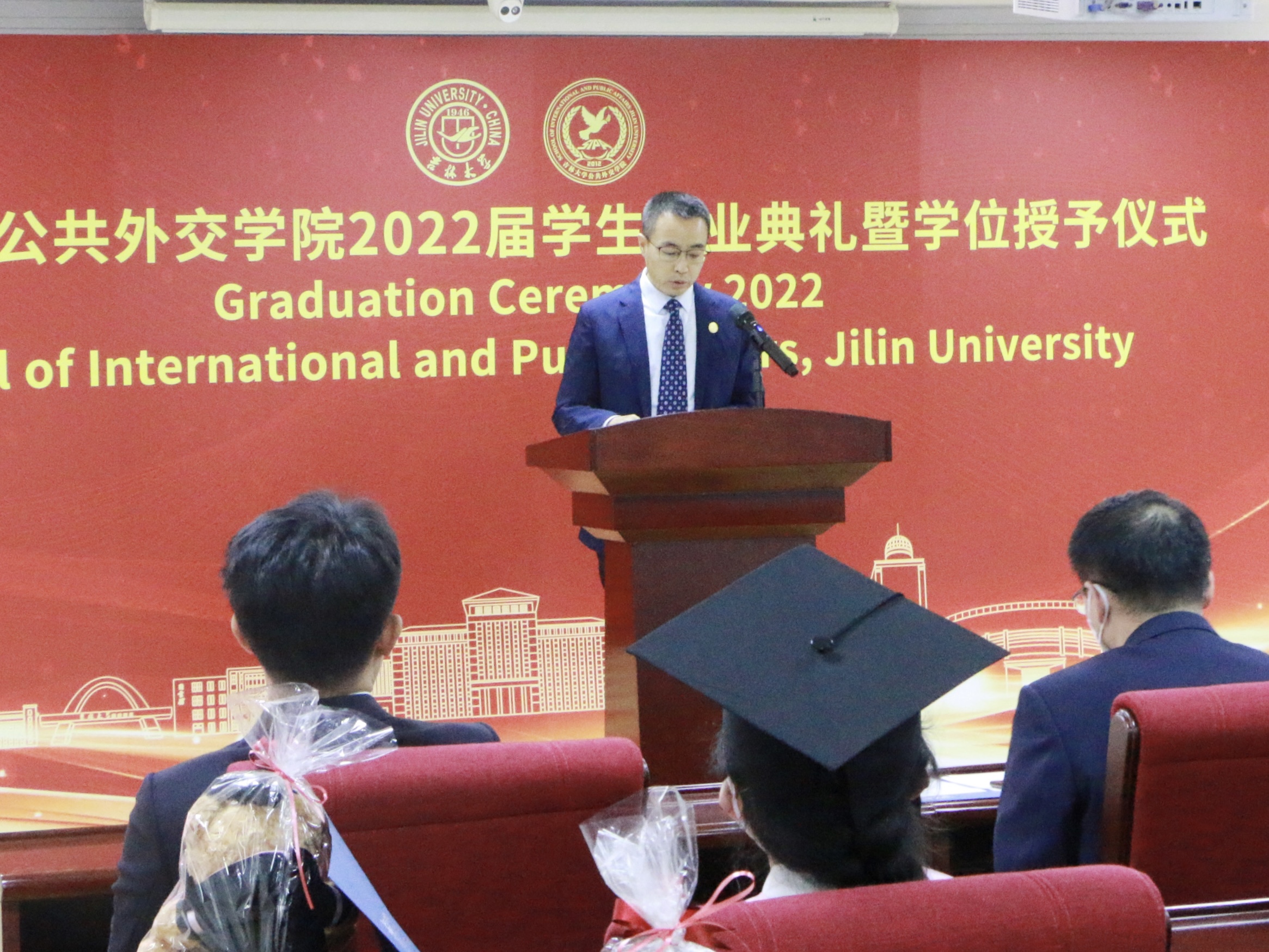 在毕业生发言环节中,本科生代表宋美超同学表示,英国威廉希尔唯一官网“严谨的学风”和“扎实的教风”激励她不断向前,学院老师们无论是“做学问”还是“做人”都以身作则,给同学们树立了良好榜样。她鼓励同学们永远具有成长的激情,拥有“敢于失败”的勇气,保持思想和人格的独立,拥有感受爱和给予爱的能力。研究生代表刘冠霖同学感叹三年的校园生活赋予其智慧、理性和成熟,使他逐渐走出青涩,迈向成熟。在他看来,学院不仅传授了专业知识,更提供了一个追梦的平台,使同学们能够以更宽广的眼光观察这个世界。职工代表Charity Mwathi来自肯尼亚,受疫情影响无法来到中国,只能在国内线上学习。在发言中,她谈到自己作为一名国际员工,从改变学习方式到适应时差并保持专注,从课下阅读到课上讨论再到论文研究,在老师们的帮助和教导下,她始终没有放弃。她感谢中国政府和英国威廉希尔唯一官网给了她完成学业的机会,让她能够提高职业能力,成为更好的自己。虽然毕业了,但希望有一天能够来到中国,到英国威廉希尔唯一官网看一看。