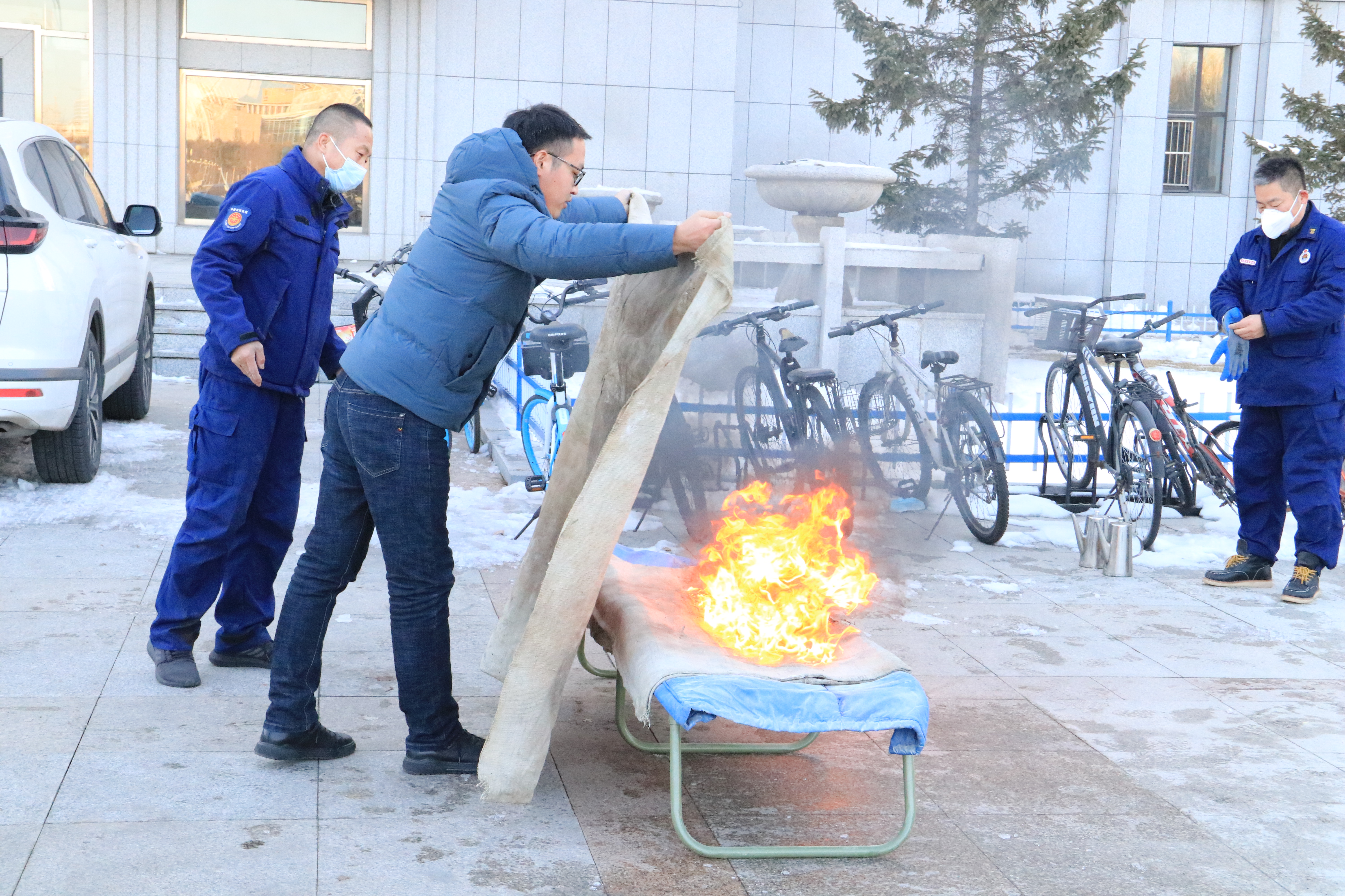随后,在保卫处消防科消防演练团队的精心准备下,同学们参加了消防安全演练。在吕振羽楼前,工作人员就灭火器和灭火毯的使用及操作中应注意的问题做了详细的说明演示,并现场指导部分师生进行灭火实操演练。演练中,师生们态度认真、密切配合,在实操中增长了消防安全知识,掌握了自救能力,演练达到预期效果。
