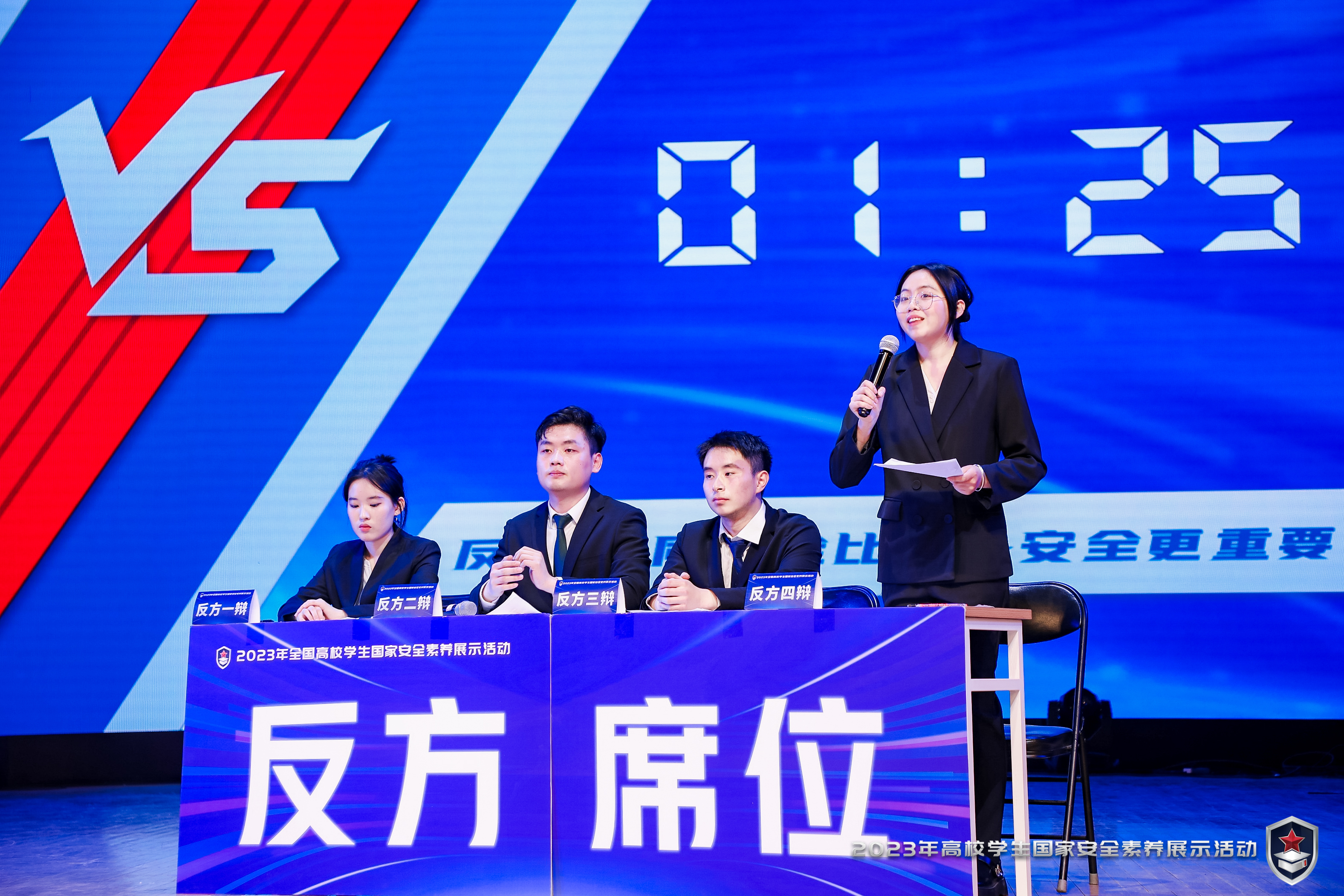 最后,代表队以总分373.6的最高分成功进入终极PK辩论赛环节。经过激烈交锋,队员们对“共同安全比自身安全更重要”这一持方所进行的有理有据的论证征服了大众评审和专家评审,经共同投票,公司代表队以54:9的优势摘得桂冠,荣获2023年全国高校员工国家安全素养展示活动特别风采之星殊荣。