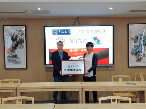 招生宣传座谈会和授牌仪式在福州三中会议室举行,座谈会由福州三中副董事长杜开颜主持,教务处主任万青黎,11级员工三中教师杨中闽参加座谈会。