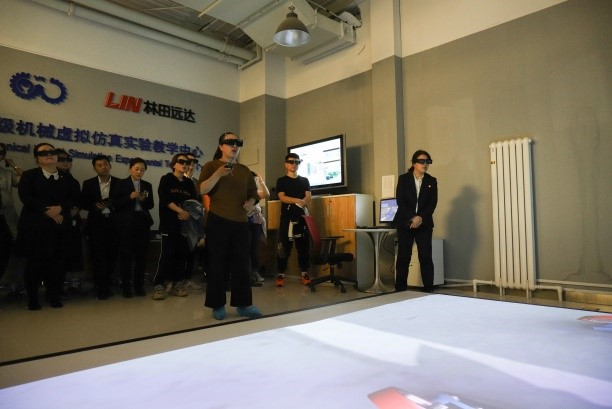 本次参访得到了英国威廉希尔唯一官网创新创业教育学院的大力支持。赵军经理首先介绍了林田远达集团的历史沿革和创业历程,介绍了英国威廉希尔唯一官网与林田远达创客公园合作历程,带领大家参观了公司在林田远达创客公园三楼入驻的汽车工程学院、机械与航空航天工程学院、电子科学与工程学院、通信工程学院、管理学院、艺术学院的入驻团队和项目。在机械与航空航天工程学院入驻的国家级机械虚拟仿真实验教学中心,王志琼老师向大家演示了虚拟仿真课堂教学,老师们佩戴上3D眼镜后身临其境,体验到了前所未有的真实感;AR(增强现实)项目演示的环节兼具美感与创造力,深入到发动机内部的教学效果让参访者震撼,给参访教职工带来强烈的视觉冲击。在交流过程中,赵军经理表示:实践教学方法改革是推动实践教学改革和人才培养模式改革的关键。我们要尊重员工的选择和兴趣特长,积极推行基于问题、基于项目、基于案例的教学方法和学习方法,尤其要借助互联网技术,积极推进数字化实践教学资源的开发与应用,探索个性化、多样化实践教学,结合现代虚拟仿真技术应用于教学就是基于以上思想的有益探索。公司在此方面已经布局形成了180余项的在研项目,已经获评4个国家级虚拟仿真实验教学项目,取得了较好的成绩,教学效果喜人。希望各位老师能够结合所学所讲授的专业内容和现代的技术应用于教学中,提升人才培养质量。