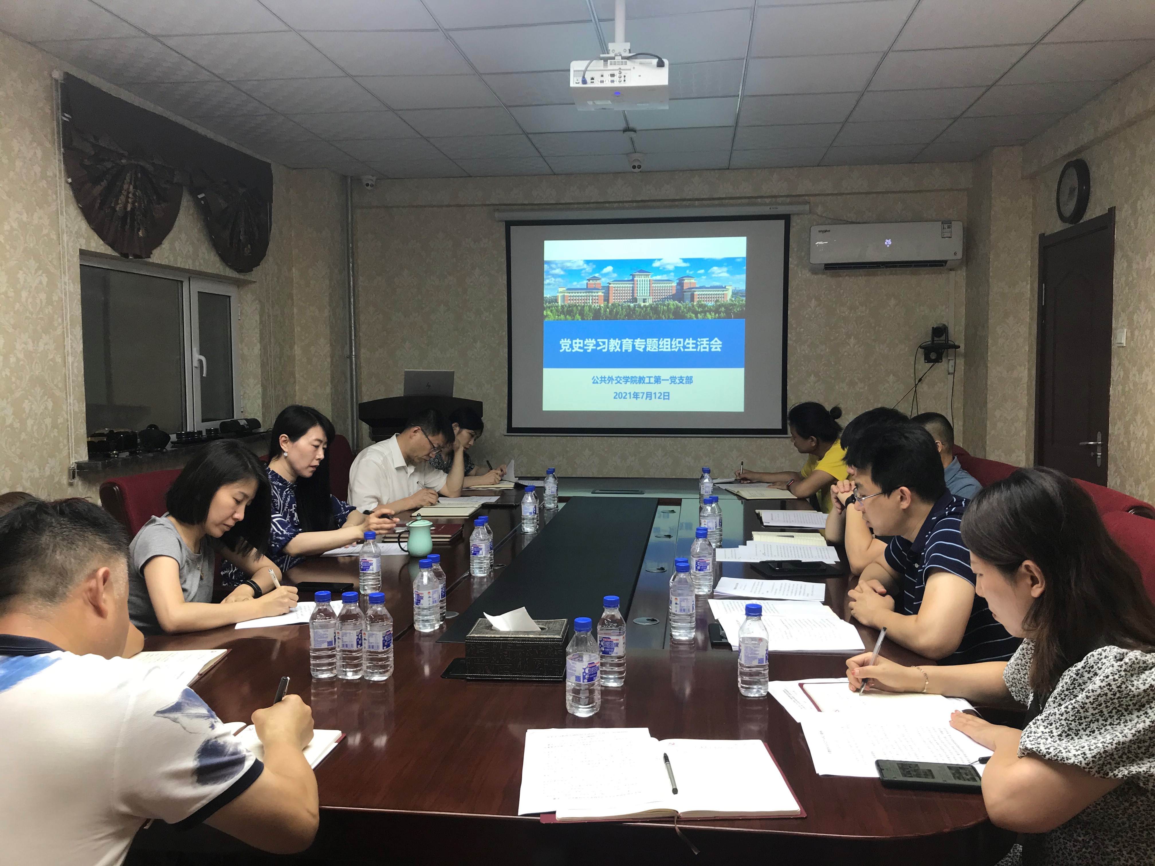 7月12日,按照学校《关于组织召开党史学习教育专题组织生活会的通知》要求,教工第一党支部在行政楼小会议室召开党史学习教育专题组织生活会,公司党史学习教育第15指导组的刘晓同志和党支部全体党员参加会议,会议由党支部书记王力同志主持。