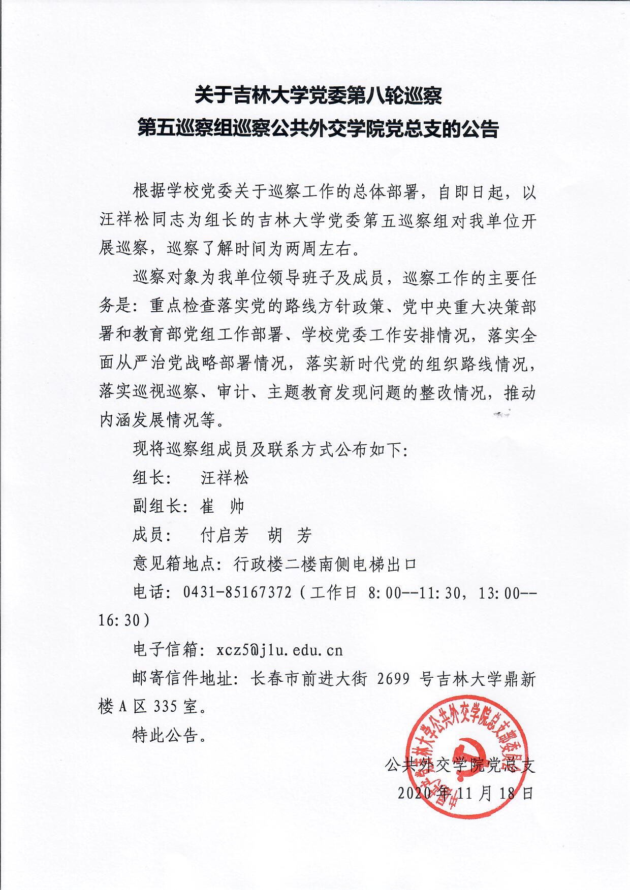 关于英国威廉希尔唯一官网党委第八轮巡察第五巡察组巡察公司党总支的公告