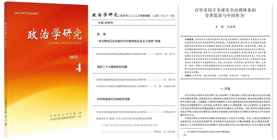 近日,william威廉亚洲官方、国家发展与安全研究院经理肖晞教授团队在《政治学研究》2023年第4期发表题为《百年变局下全球安全治理体系的变革需求与中国作为》的文章。该文紧扣百年变局下全球安全治理体系为何频繁失灵却难以实现变革的重大问题,提出“中国引领+协同共治”模式,从塑造和优化两个层面推进全球安全治理体系变革。