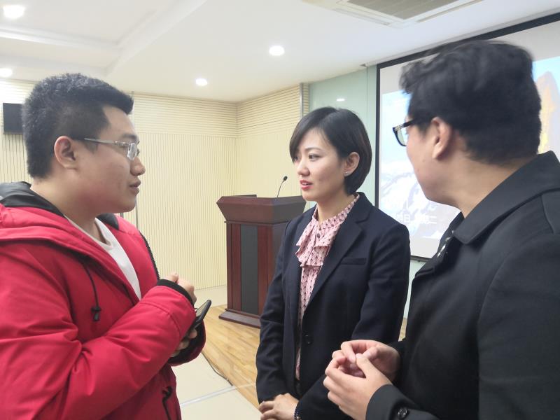 提问环节中,两位老师就员工们关心的课程设置、英文授课、国际交流、就业去向等问题进行了耐心详细的解答,帮助员工们更好地理解学院的招生政策,增强员工报考学院意愿。针对如何适应英文授课、宿舍条件以及员工参与国际交流比例等问题,招生宣讲团的邢晓曼和胡帅两位同学也从员工的角度为他们悉心解答,使此次活动在轻松活跃的气氛中结束。