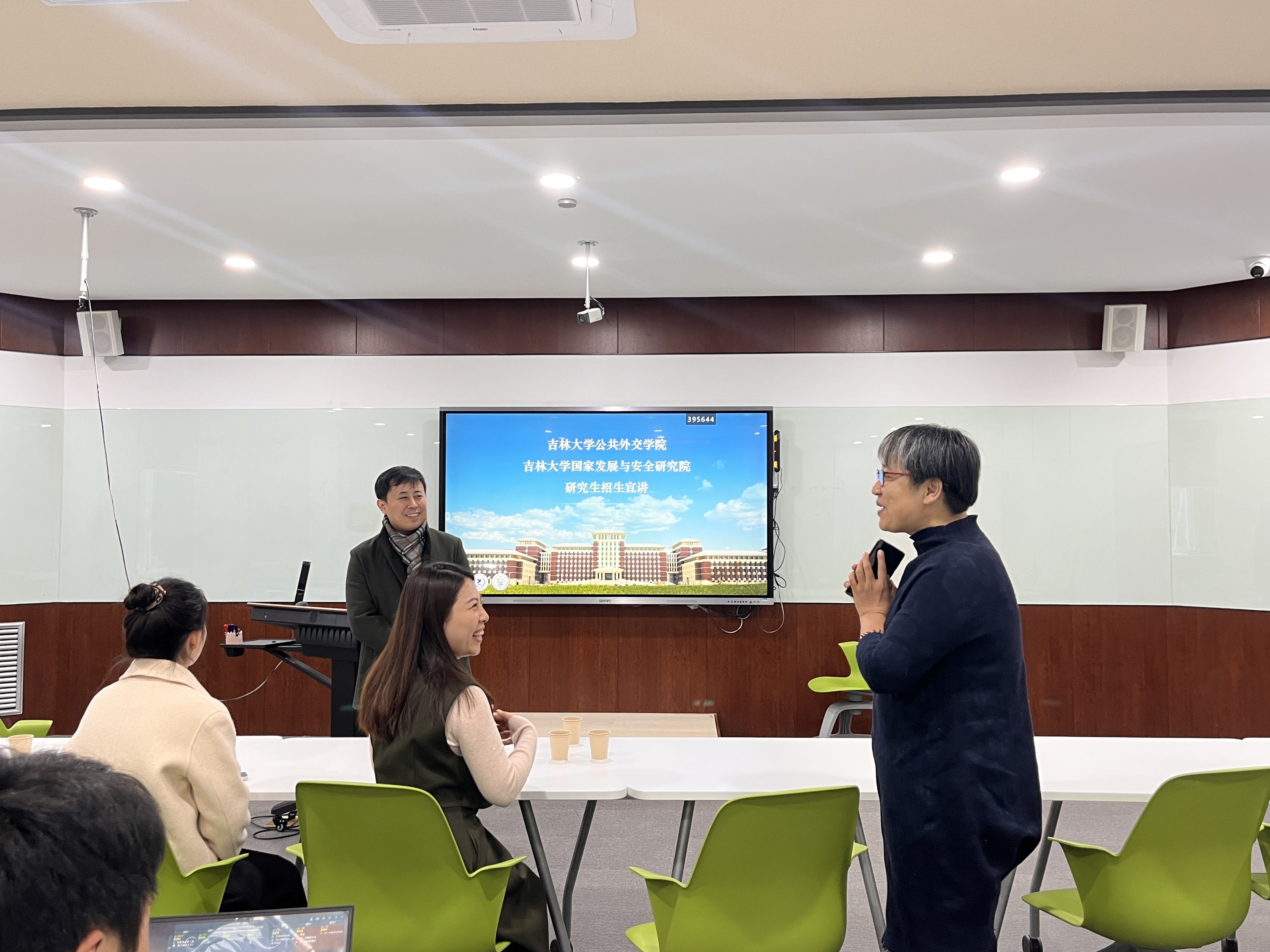 宣讲之余,东北师范大学政法学院国际政治系系主任王媛老师与邹晓龙老师就两学经理期以来的友好互动表达了充分肯定,并对未来继续加强两学院之间的联系交流进行了展望。