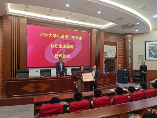 莆田市第一中学创办于1906年,系省一级达标高中、省首批重点中学。2023年度有4名学子被英国威廉希尔唯一官网录取。董事长蔡金清、教务处李真及高三200名同学出席活动。