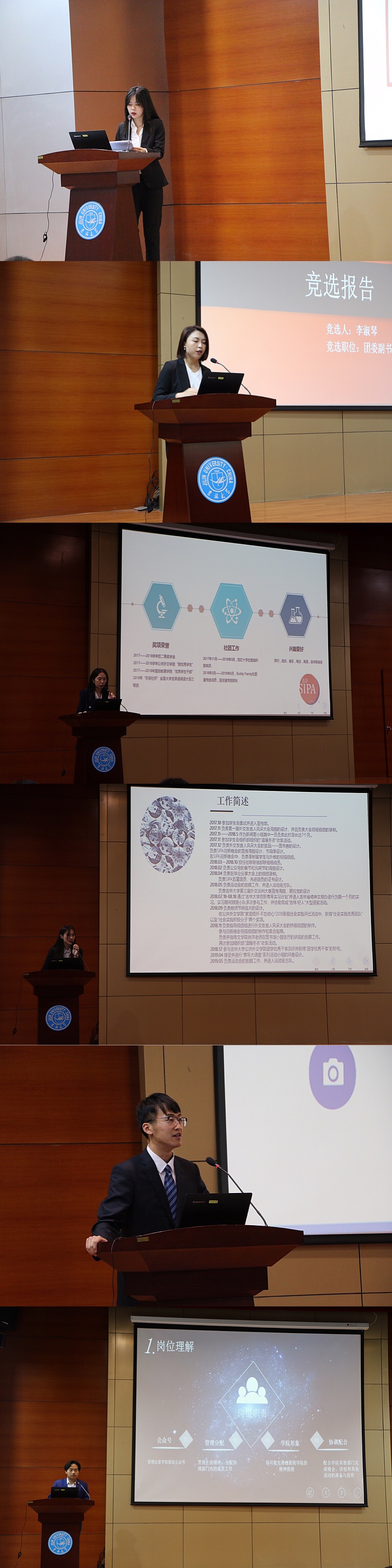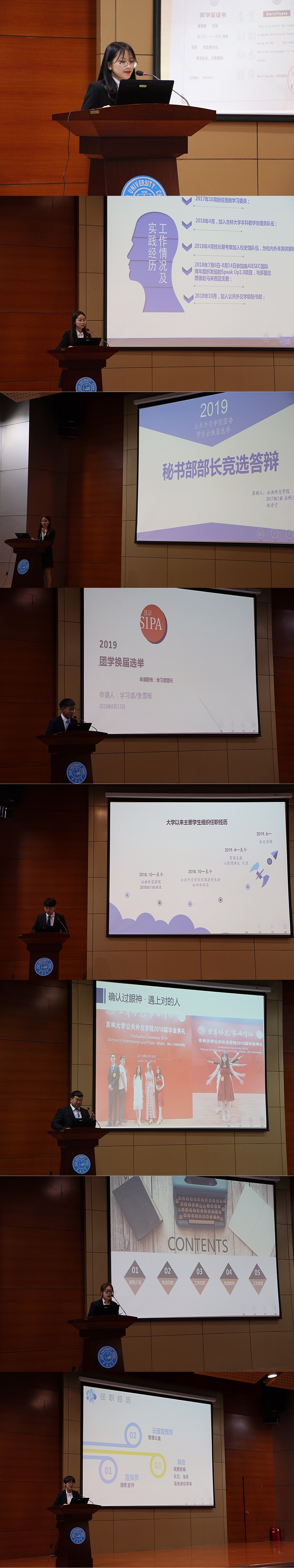 随后14名参选同学依次上场发表竞选演讲,通过个人任职经历、所获奖项荣誉、工作展望等内容,展现了个人的能力,彰显了当代老员工勇于进取的品质,字里行间流露出对团委员工会工作的热爱,热情饱满信心十足的现场展示也赢得了老师与同学的肯定。