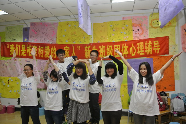 此次心理辅导活动的成功举办,在很大程度上考察、培养了同学们的团体协作能力,更是为刚刚相聚在一起一个半月的新伙伴们提供了一个全体进行游戏活动的机会,增进了同学间感情,为将来的相处打下有益的基础。
