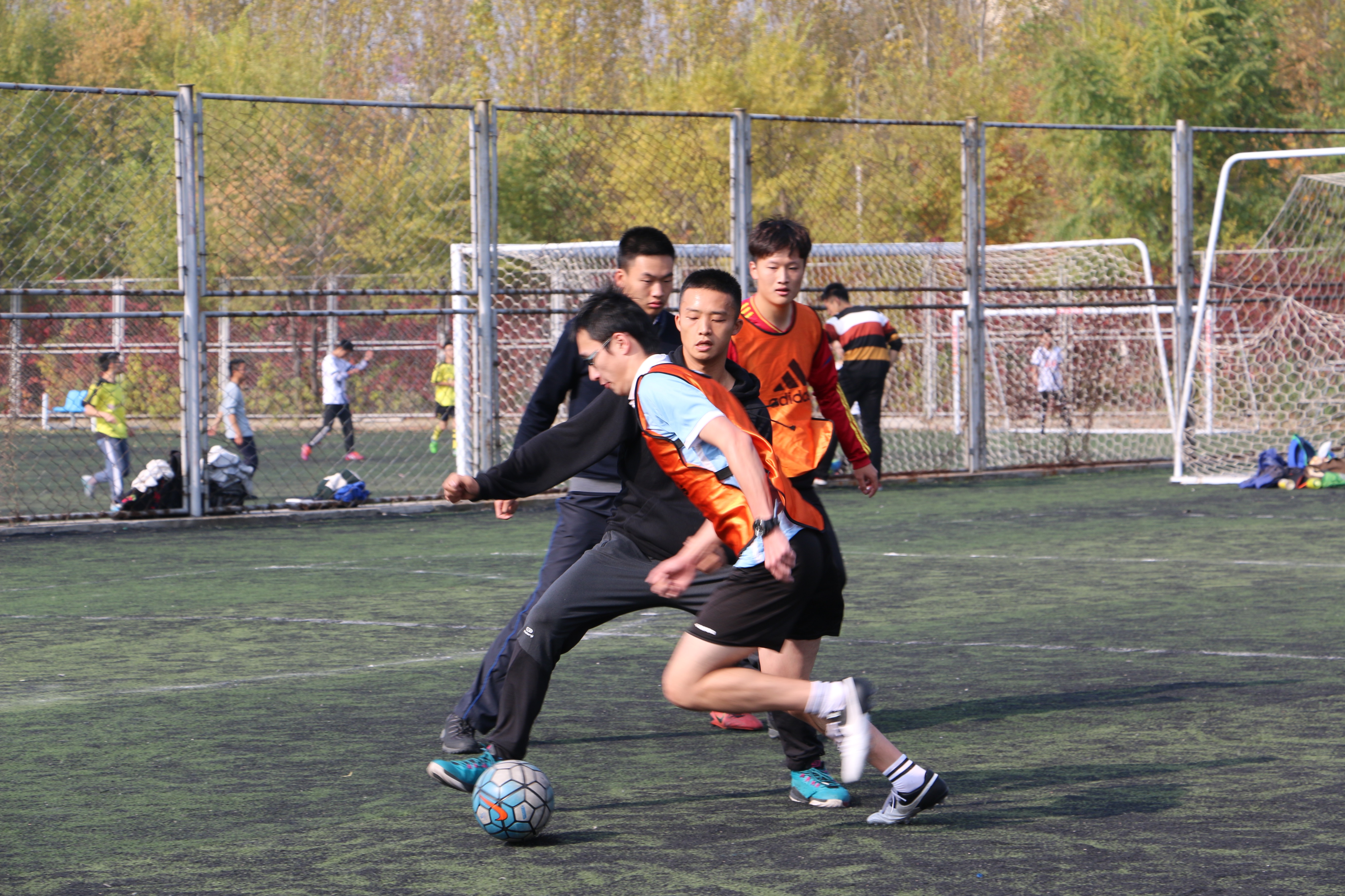 比赛上半场阶段,化学学院牢牢占据场上局势,通过巧妙配合以及球员的个人实力,打入3球。反观公司,依靠队员之间的配合扳回一球。双方以3-1的比分结束上半场的比赛。