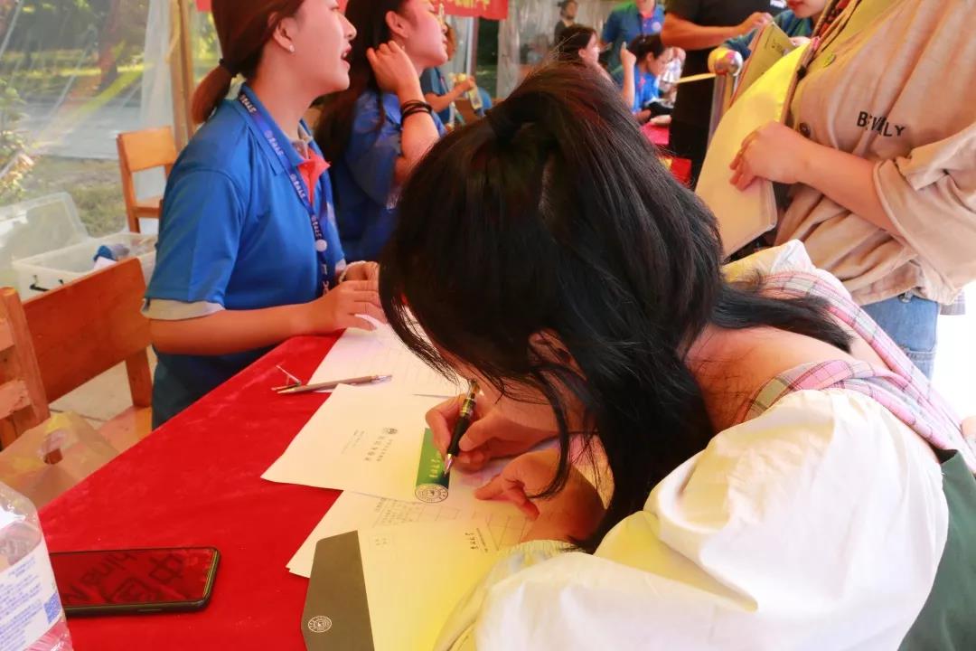 上午七点,团委员工会志愿者在五月花广场学院迎新接待站准时集合,并按照预先安排正式开始一天的迎新工作。新生资料的收集、迎新材料的发放、迎新流程完成后的现场签字确认等工作均有序进行。