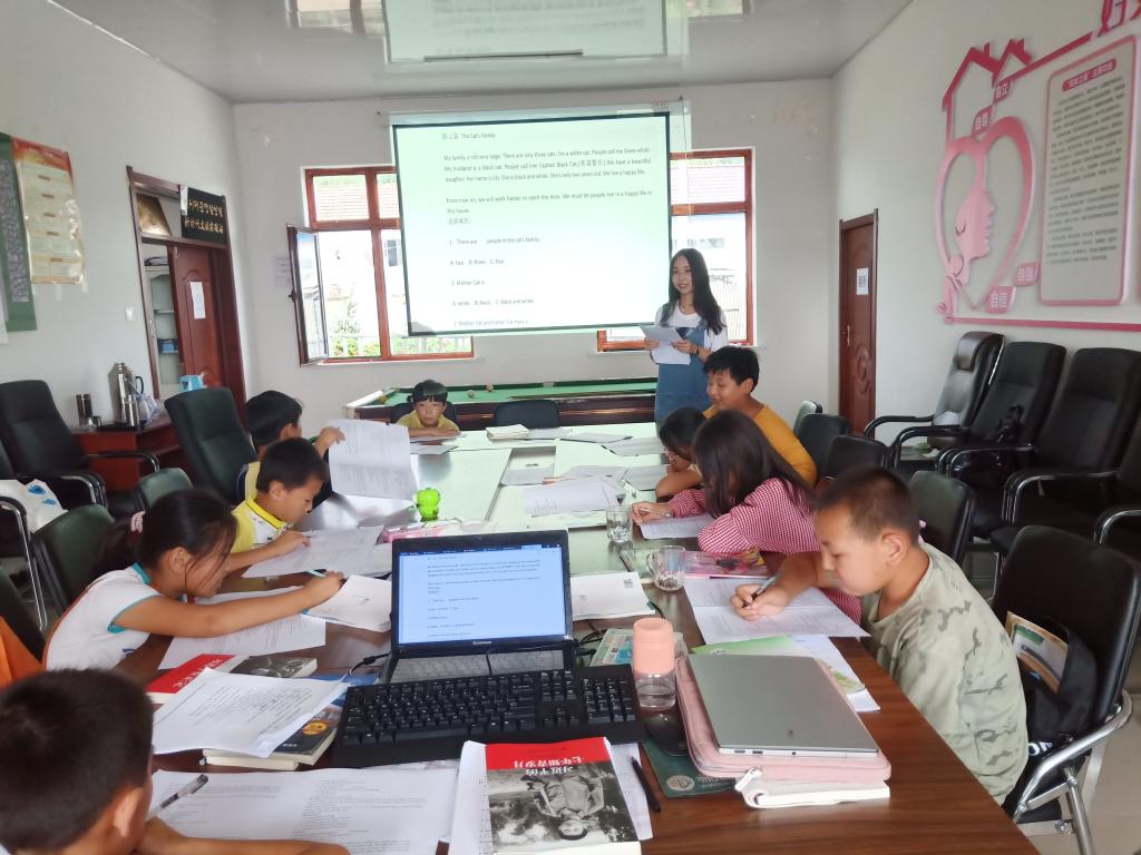 第二天支教队员开始了教学活动。由于孩子们英语普遍比较薄弱,成员们根据员工的实际知识基础和接受能力,从音标、阅读、语法等几个方面为员工们突击补习。课余时间,成员们还会为员工答疑解解惑,辅导暑假作业。
