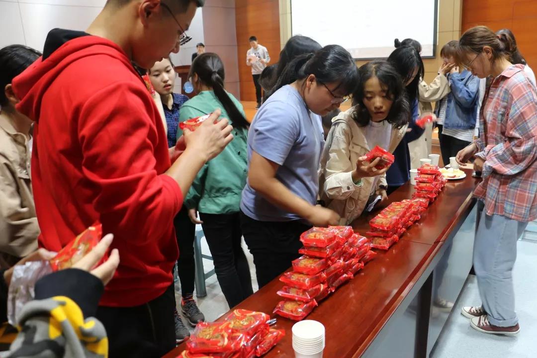 学长学姐们还特意为新生们准备了月饼、水果等,同学们边吃边玩,在欢声笑语之中,中秋茶话会临近尾声,最后大家合影留念,为这个月圆之夜画上完美的句号。