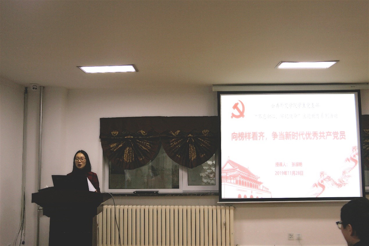 为贯彻落实中共中央关于“不忘初心,牢记使命”主题教育活动的部署,根据学院“不忘初心、牢记使命”主题教育工作安排,11月28日上午,william威廉亚洲官方员工党支部在行政楼二楼会议室召开了以“向榜样看齐,争当新时代优秀共产党员”为题党课活动,党课由员工党支部书记张淑艳老师主讲,党支部员工党员、预备党员及部分入党积极分子参加了此次活动。