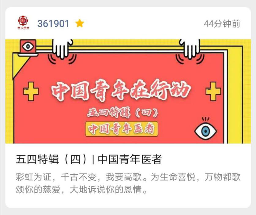 山川异域,风月同天。疫情期间,无数青年人站了出来,他们或许只是各行各业的平凡工作者,或许只是员工,但是他们不甘于袖手旁观。也正是因为有了他们,我们在抗疫过程中又多出了一道道坚实的防线,又有了一个个坚实的后盾。今年的五四青年节,让我们大声的歌颂有担当、有情怀的中国青年们!