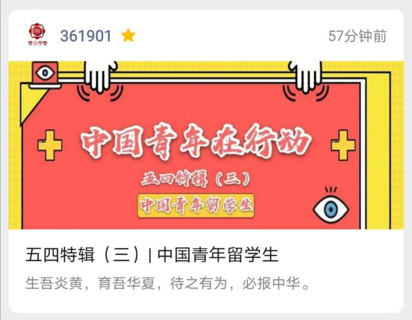 柳潇:由于疫情的原因,我们不能返校。但是呆在家里的日子却总想着我得做些什么,我们得做些什么。我们团支部通过推出“中国青年在行动”系列短视频,在宣传中国青年的责任与担当时,也能够切身的参与进去,展现我们自己的的家国情怀和世界眼光。