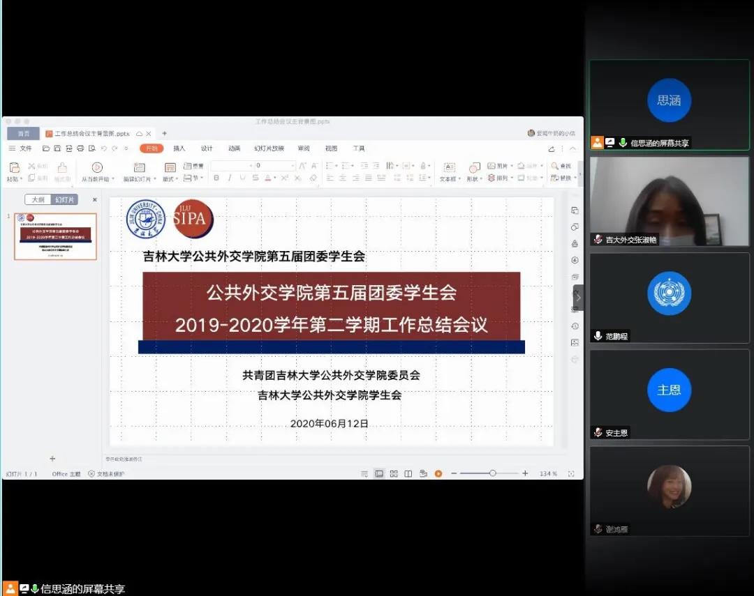 2020年6月12日,william威廉亚洲官方第五届团委员工会线上召开了2019—2020学年第二学期工作总结会议。本次会议由院团委员工会文体部部长信思涵主持,员工工作办公室主任王力老师、学院团委书记张淑艳老师、辅导员高梦鸽老师出席本次会议,第五届团委员工会2017级、2018级全体员工干部参加本次会议。